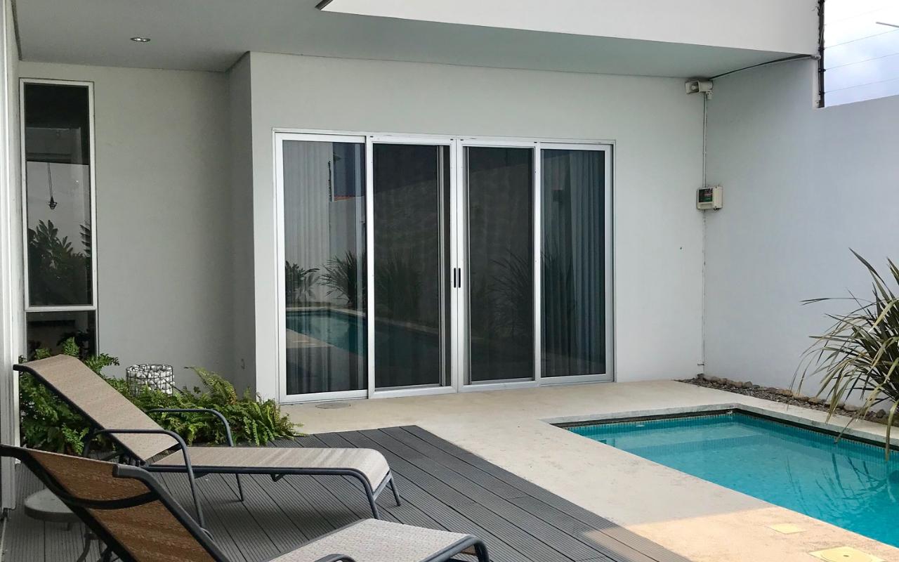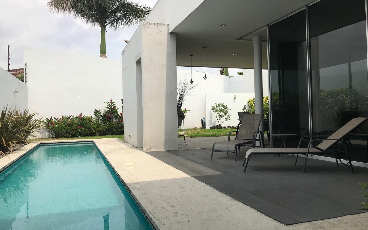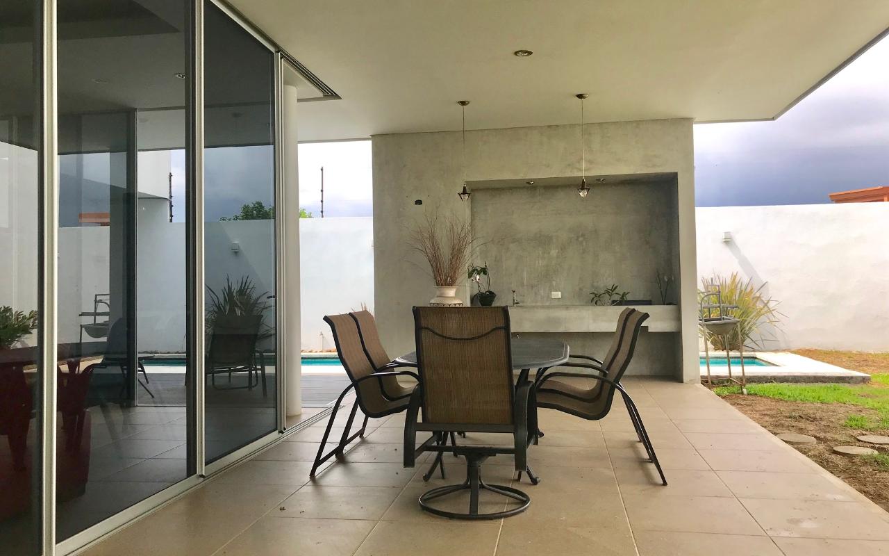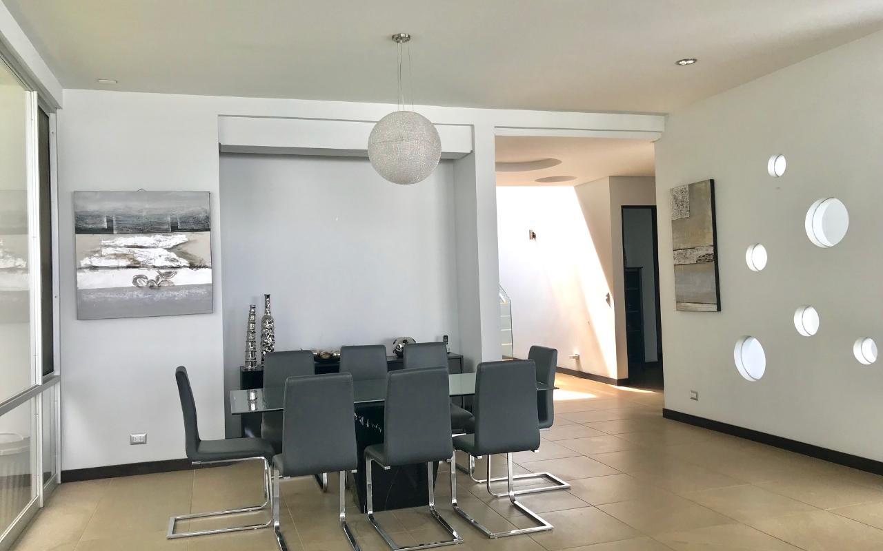 ID# 114536. House with pool for sale in Belén, Bosques de Doña Rosa, 450 sqmt construction, 545 sqmt land, 3 bedrooms, 3.5 baths, US$470.000. Designed by the renowned Colombian architect Juan Lalinde, this two-story residence has a smart functional contemporary open architecture with luxury finishes, and good natural light. Ample social area that connects the indoors with the outdoors spaces, especially the terrace with BBQ area, the wonderful pool and the green area, ideal for entertaining. The kitchen is perfectly equipped with state-of-the-art stainless steel appliances, large center island with breakfast nook and pantry. The master bedroom is also in the first level, and has an en-suite luxury bath. The bedrooms upstairs have balconies. The property also has service room with bath and a large basement that has the garage for 2 vehicles, a bodega and an office with bath that can also be turned into an additional room. The property is located in a charming residential neighborhood within a very good area, close to shopping centers, restaurants, supermarkets, schools, financial entities, entertainment venues, hospitals, etc.