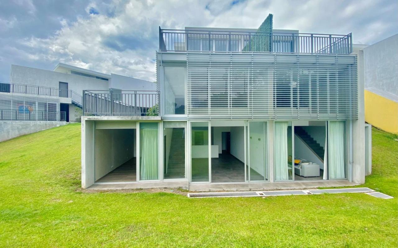 ID# 116277. Contemporary apartment for sale in Guachipelín, Escazú, private condominium, 134 sqmt, 2 bedrooms, 2.5 baths, US$235.000 (negotiable). Apartment with modern design, open concept, fine finishes and a great view. The social space has double-height ceiling and floor-to-ceiling glass which provides vast natural light and amplitude. Integrated kitchen, furnished. Ample bedrooms with laminated floors, one of them is mezzanine-style. There’s laundry area and half bath for visitors. The unit disposes of 2 roofed parking spaces plus a bodega. The condominium offers 24/7 security and amenities like pool, tennis court, and ample green areas with spectacular views.