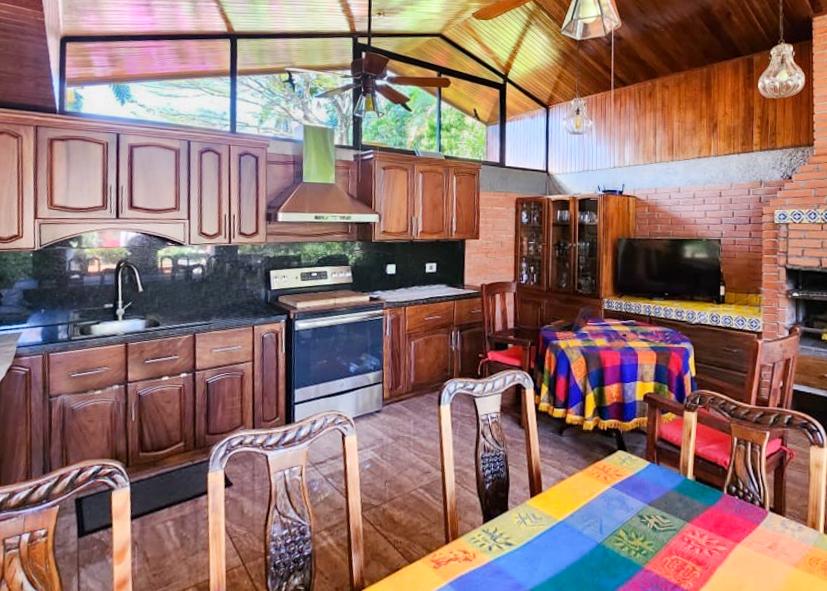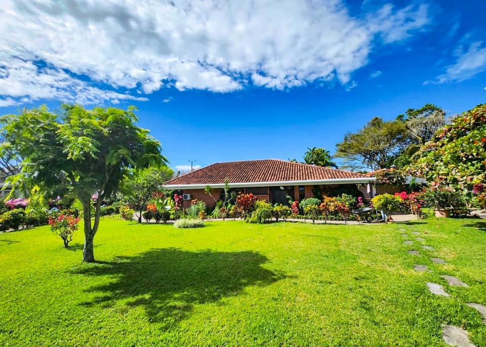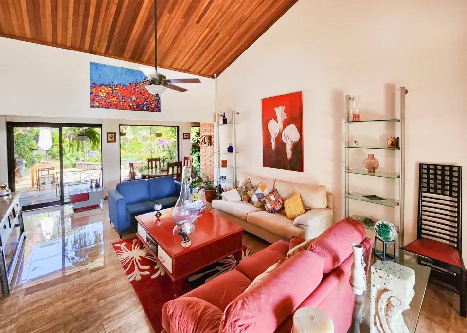 ID# 116701. Independent house for sale or rent in La Guácima, Hacienda Los Reyes condominium, 300 sqm construction, 2.000 sqm land, 3 bedrooms, 2.5 baths, US$620,000. This beautiful rustic house is a one-level property located in a tranquil and peaceful Hacienda Los Reyes, adjacent to one of its parks. It has 300-sqm of construction, built on a 2.000-sqm lot. The house features high coffered ceilings with exposed beams, a spacious and independent kitchen designed with a brick oven and custom made cabinetry. There is a dining room with direct access to a covered terrace with a second kitchen. The house also has 3 ample and comfortable bedrooms with garden vies, 2.5 bathrooms and a service room. The property has its own private well and irrigation system for easy maintenance of the gardens. The property has two covered parking spaces in the garage and two uncovered parking spaces. This rustic house is perfect for those looking for the easy going Pura Vida lifestyle in the countryside that Hacienda Los Reyes has to offer. With its independent kitchen, spacious dining room, and covered terrace, it is the ideal place to enjoy the best of the outdoors. Hacienda Los Reyes is a very family-oriented community that offers a full private security system, and a whole lot of excellent amenities for its residents to seize and enjoy. There are many recreational spaces such as polo, tennis and golf courts within an abundant nature environment that surrounds the houses. Enjoy an excellent climate, beautiful mountains, green meadows, lush trees, fresh air, water, forest reserves, and abundant nature in general.