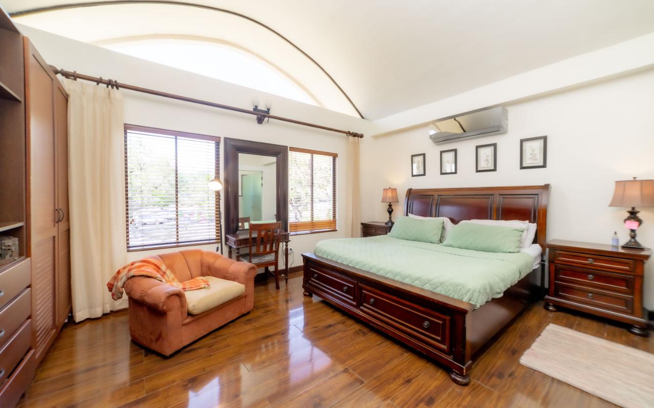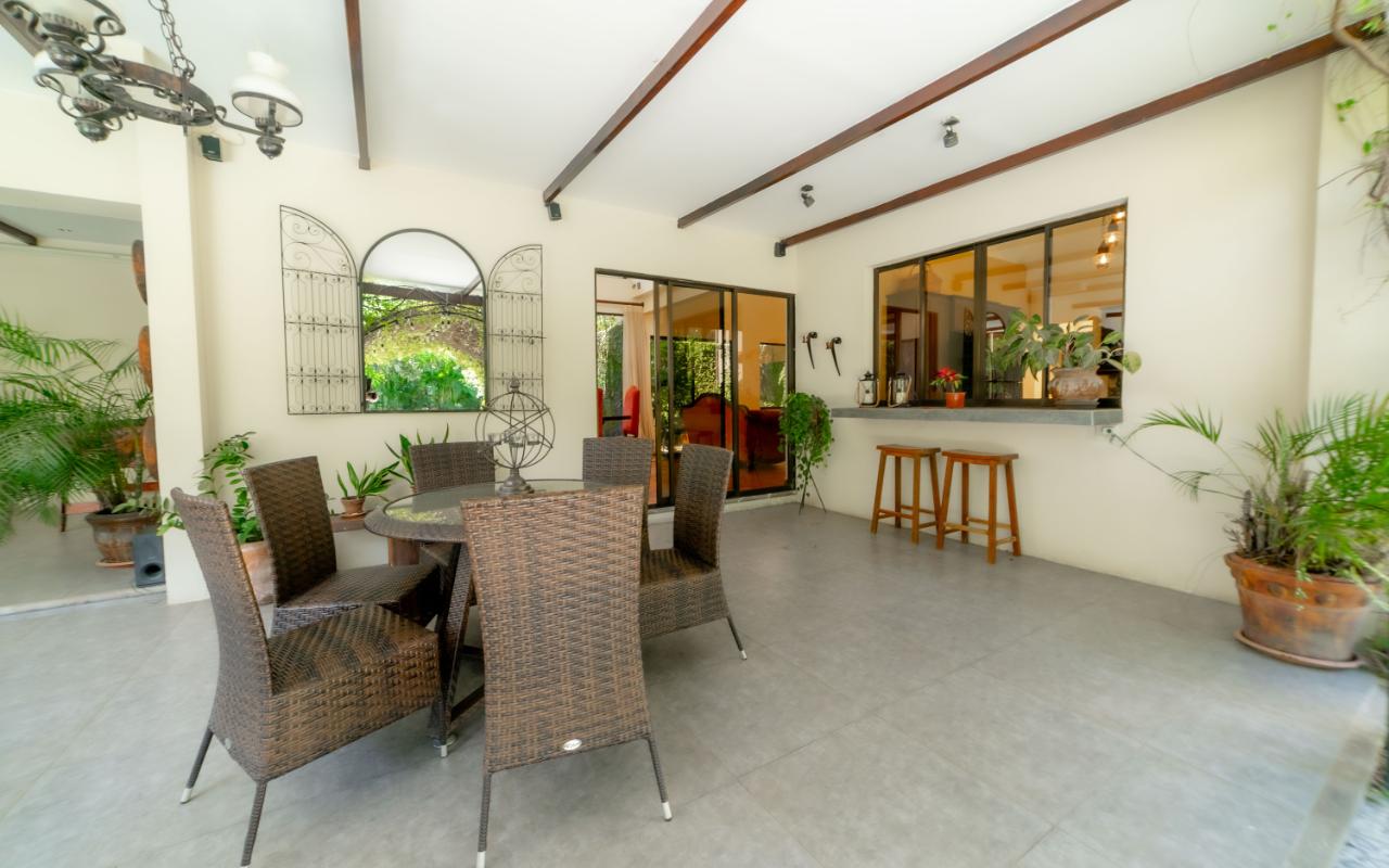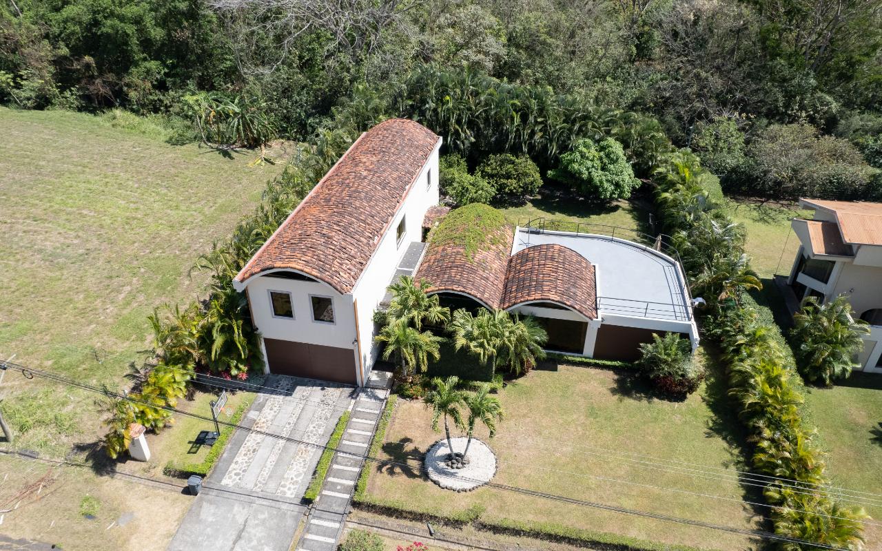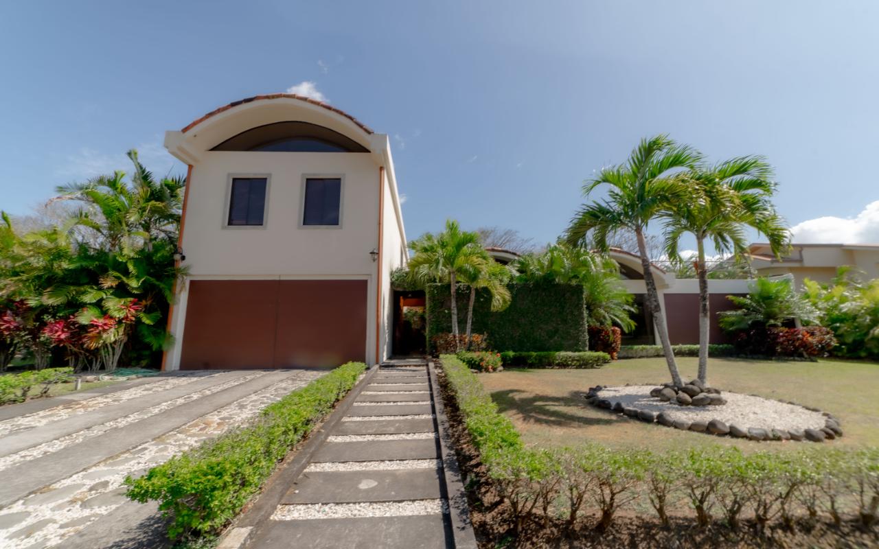 ID# 116720. House for sale or rent in La Guácima, Hacienda Los Reyes condominium, 420 sqm construction, 1.200 sqm land, 5 bedrooms, 4.5 baths, US$685.000 or US$3.500/mo. This magnificent two-story home with traditional architecture and the finest finishes, built in 2012, offers a harmonious blend of comfort, elegance and luxury. Located in an excellent spot within the condominium, it is across the sports areas, so there are no buildings or view obstructions. The home features 5 bedrooms, 4.5 baths, an ample living room and dining room, and beautiful arched ceilings that provide a sense of amplitude. The kitchen is separated, fully furnished with custom wood cabinetry, granite countertopss, and a dinette area. There are floor-to-top windows throughout the house, filling it with natural light and freshness. The terrace and area with pergola overlook the huge gardens. The ourdoors area can be accessed via a spiral staircase from the second floor. The master bedroom also boasts an ensuite bath, a hot tub, and a large walk-in closet. The secondary bedrooms have closet space and view to the garden as well. There’s an ample laundry room and half bath for guest on the first floor. The house also includes a closed garage for 2 vehicles and additional parking space in the driveway. It's the perfect spot for those looking for a luxurious home in a peaceful setting. Hacienda Los Reyes is a 24/7 security residential complex that offers a tranquil and quiet environment, away from all the city noise but at the same time strategically located to be close to all kinds of urban facilities such as supermarkets, shopping centers, schools, banks, restaurants, hospitals, entertainment venues, through easy access roads. The complex has great amenities like pool, ranch, soccer field and ample green areas with orchard and fruit trees.