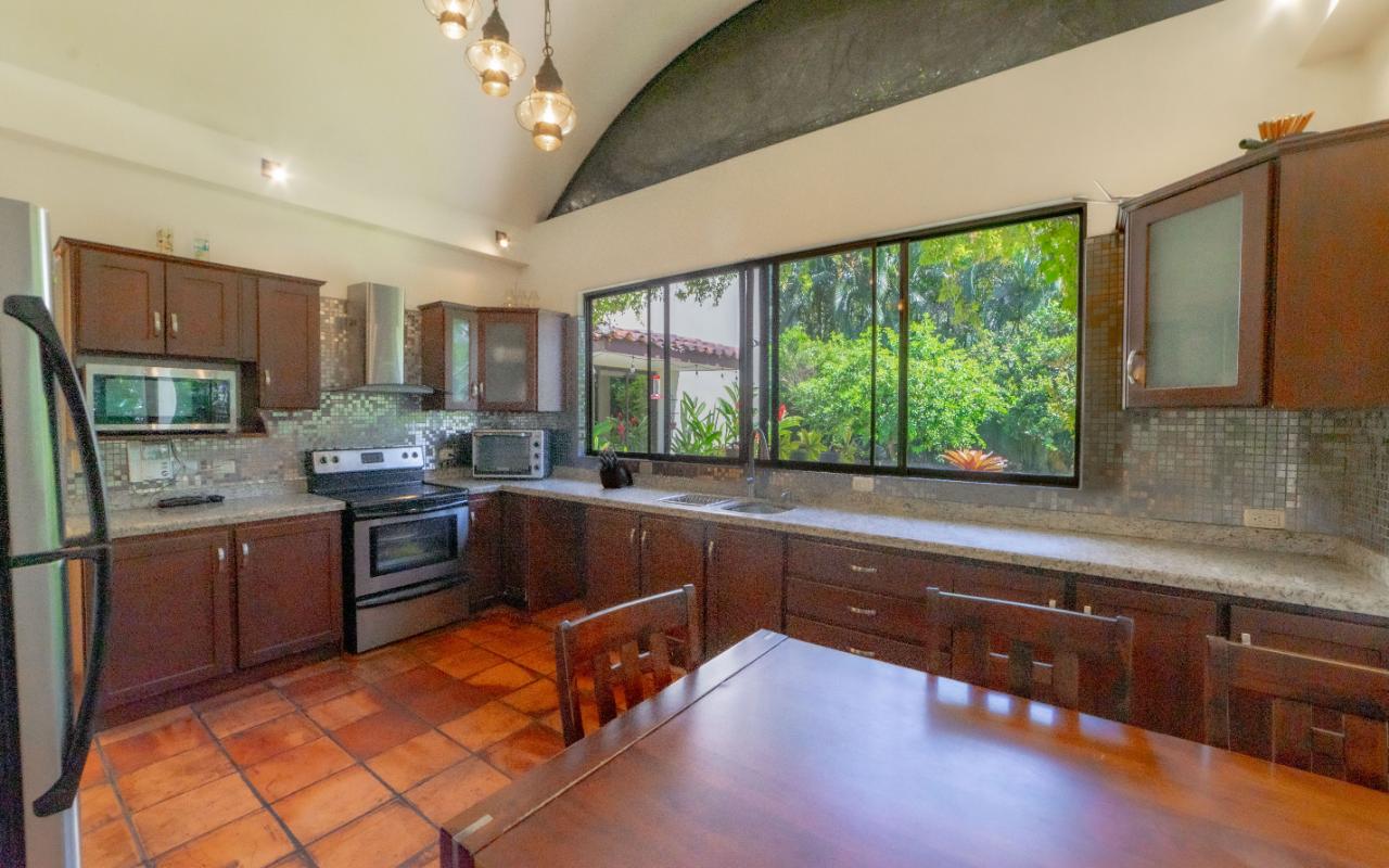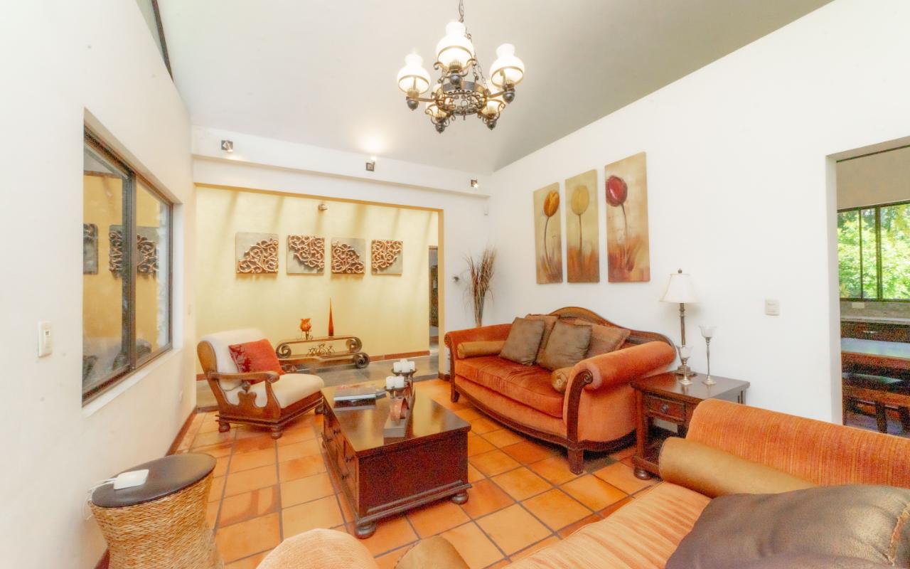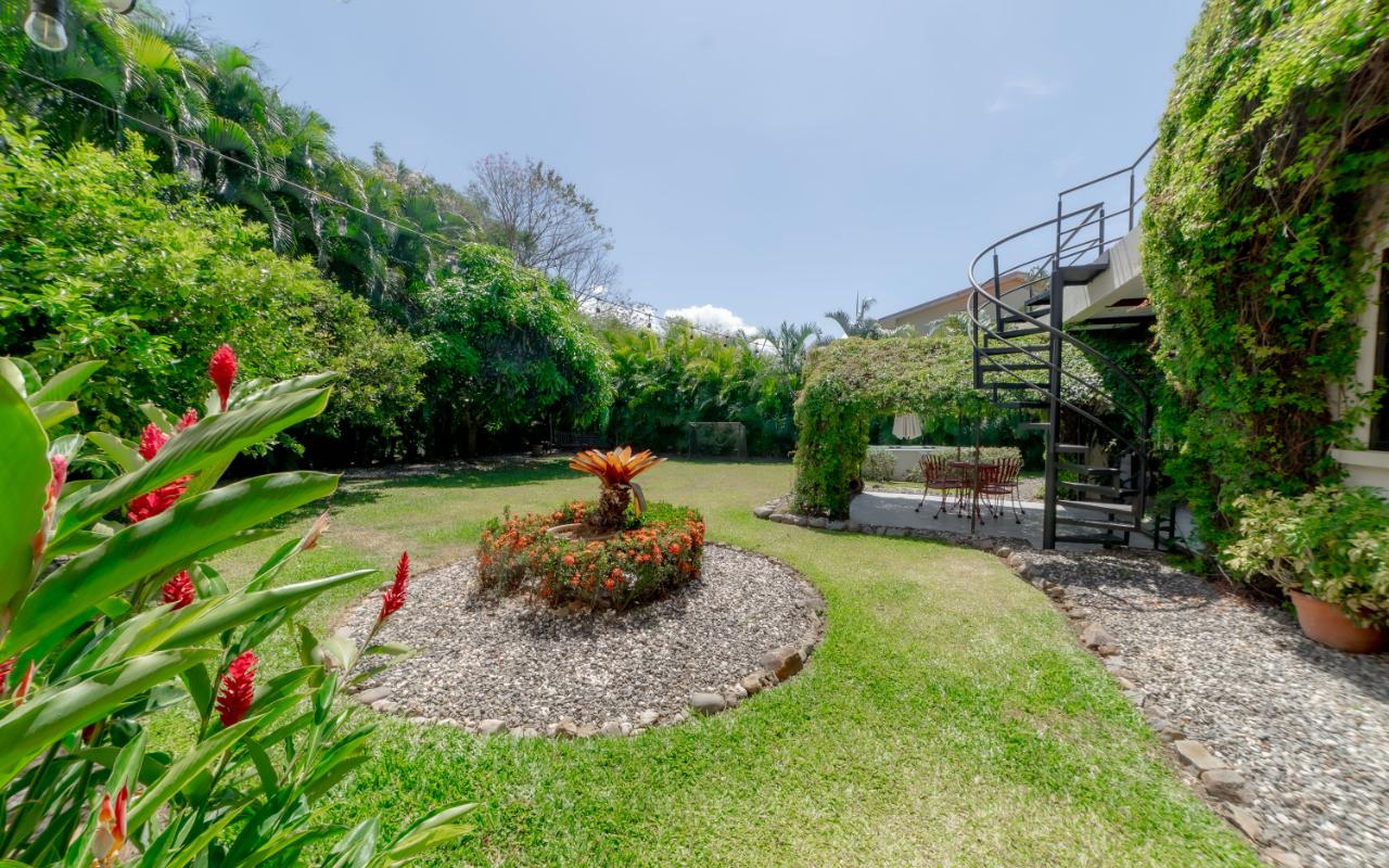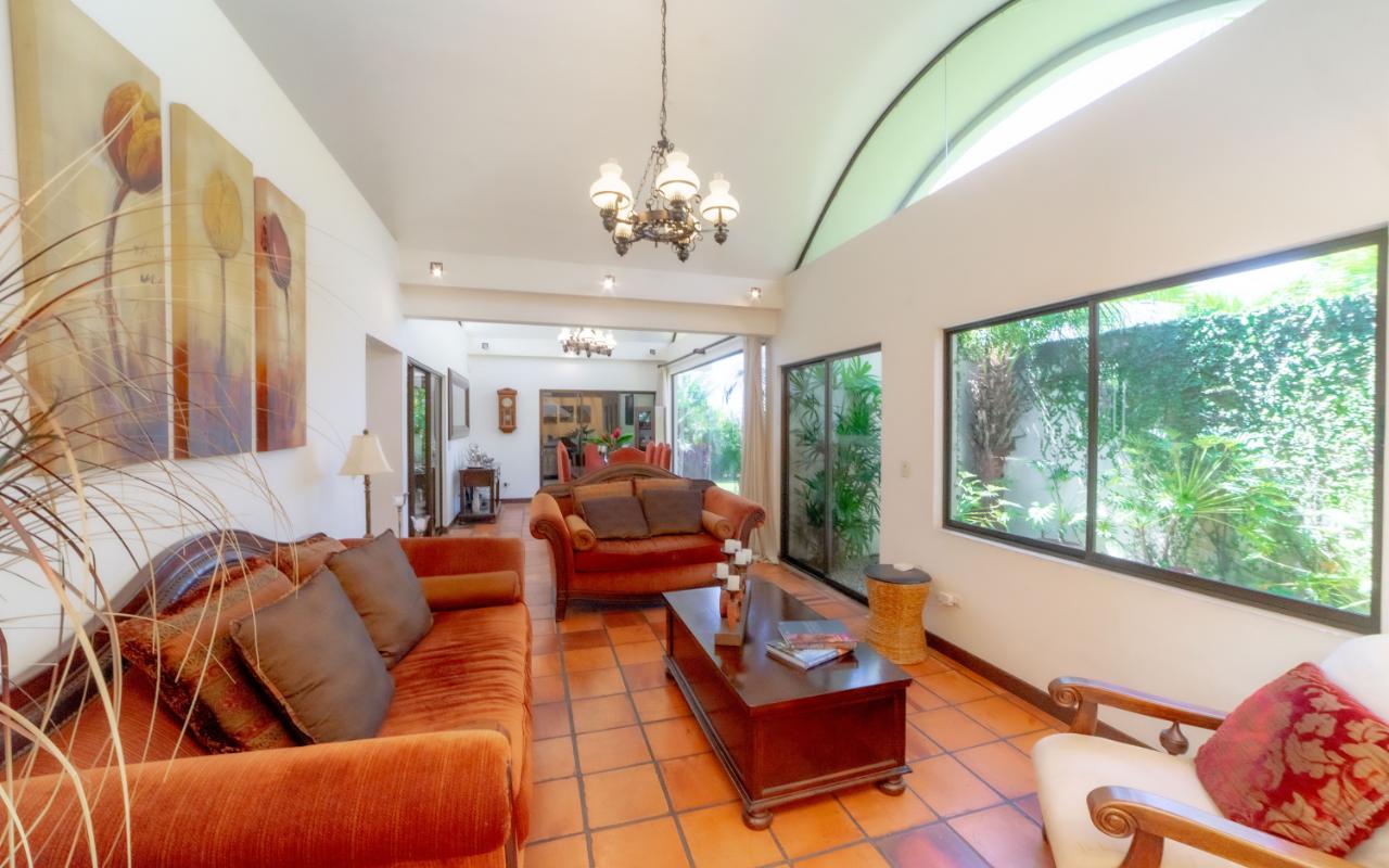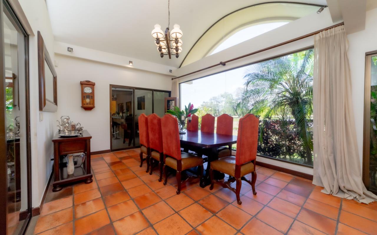 ID# 116720. House for sale or rent in La Guácima, Hacienda Los Reyes condominium, 420 sqm construction, 1.200 sqm land, 5 bedrooms, 4.5 baths, US$685.000 or US$3.500/mo. This magnificent two-story home with traditional architecture and the finest finishes, built in 2012, offers a harmonious blend of comfort, elegance and luxury. Located in an excellent spot within the condominium, it is across the sports areas, so there are no buildings or view obstructions. The home features 5 bedrooms, 4.5 baths, an ample living room and dining room, and beautiful arched ceilings that provide a sense of amplitude. The kitchen is separated, fully furnished with custom wood cabinetry, granite countertopss, and a dinette area. There are floor-to-top windows throughout the house, filling it with natural light and freshness. The terrace and area with pergola overlook the huge gardens. The ourdoors area can be accessed via a spiral staircase from the second floor. The master bedroom also boasts an ensuite bath, a hot tub, and a large walk-in closet. The secondary bedrooms have closet space and view to the garden as well. There’s an ample laundry room and half bath for guest on the first floor. The house also includes a closed garage for 2 vehicles and additional parking space in the driveway. It's the perfect spot for those looking for a luxurious home in a peaceful setting. Hacienda Los Reyes is a 24/7 security residential complex that offers a tranquil and quiet environment, away from all the city noise but at the same time strategically located to be close to all kinds of urban facilities such as supermarkets, shopping centers, schools, banks, restaurants, hospitals, entertainment venues, through easy access roads. The complex has great amenities like pool, ranch, soccer field and ample green areas with orchard and fruit trees.