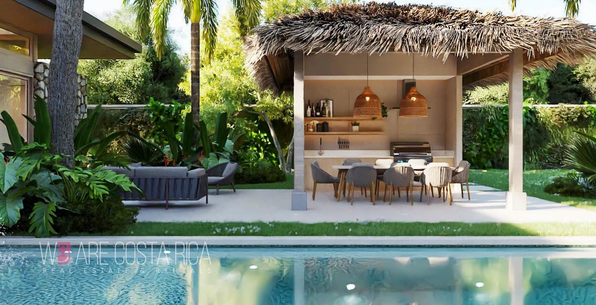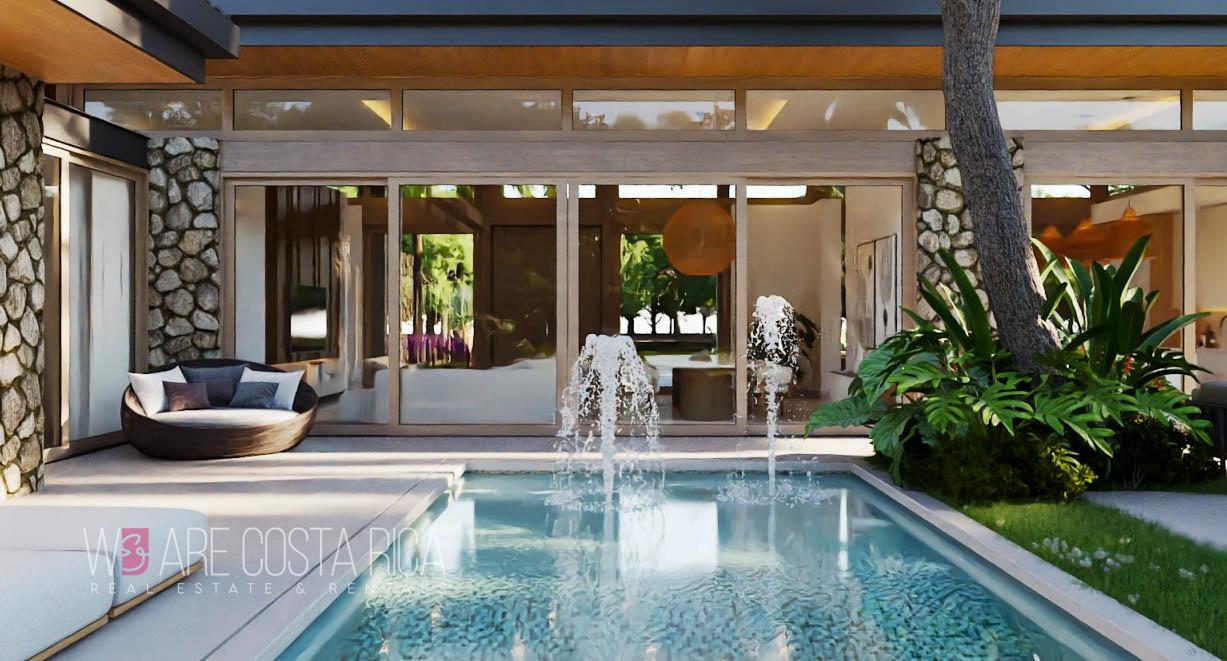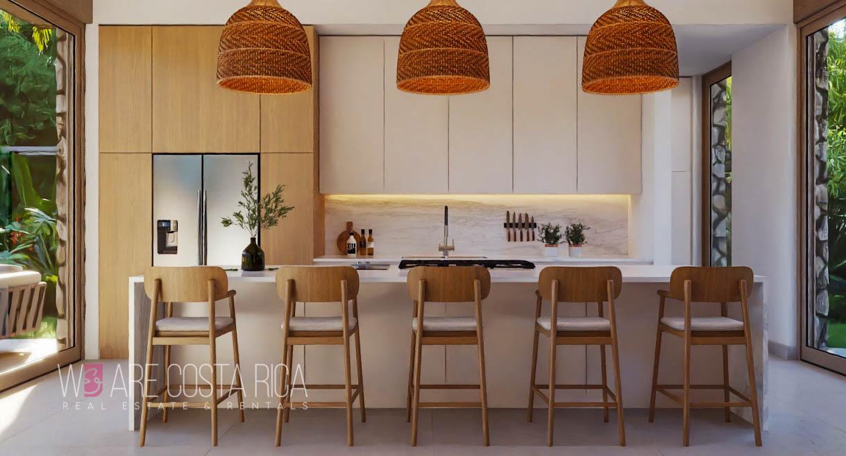 ID# 116778. Luxury villa for sale in Guanacaste, Hacienda Pinilla condominium, 530 sqm construction, 1.212 sqm land, 4 bedrooms, 4.5 baths, US$1.650.000. Nestled within the breathtaking region of Guanacaste, Costa Rica and situated in the esteemed Los Malinches condominium, this remarkable residence epitomizes elegance, sophistication, and the epitome of modern luxury. Crafted with meticulous attention to detail and featuring an array of enticing amenities, this exquisite villa offers a lifestyle of opulence and tranquility. Boasting a single-story design, this brand new villa encompasses 4 bedrooms and 4.5 baths, providing an expansive living space that caters to your every desire. Spanning an impressive 530 square meters of flawlessly constructed living area, this residence is situated on a generous plot of 1.212 square meters, ensuring ample room for both indoor and outdoor indulgence. As you enter this remarkable villa, you are greeted by an open concept layout that seamlessly integrates the various living spaces. The large windows bathe the interiors in an abundance of natural light, illuminating the carefully curated interior design and showcasing the impeccable luxury finishes throughout. The high ceilings add an element of grandeur, while the well-appointed formal dining room and large social spaces indoors and outdoors provide the perfect setting for entertaining guests and creating unforgettable memories. The heart of this magnificent villa lies within its spacious and thoughtfully designed kitchen. A testament to both style and functionality, the big integrated kitchen is equipped with top-of-the-line appliances, sleek countertops, and ample storage space, ensuring a seamless culinary experience for even the most discerning chefs. Prepare delectable meals and engage in lively conversation as the open concept design allows for seamless interaction with the adjacent living areas. Retreat to the luxurious master bedroom, an expansive haven of serenity and comfort. The huge master bedroom is complemented by a generously proportioned walk-in closet, providing an abundance of storage space for your wardrobe and personal belongings. The accompanying master bathroom exudes elegance and sophistication, featuring luxurious fixtures and finishes, creating a private sanctuary reminiscent of a high-end spa. Step outside and discover your own private oasis, featuring a sparkling pool and an expansive terrace. Embrace the year-round tropical climate as you bask in the sun-drenched ambiance or unwind in the shade of the terrace. The large lush garden enveloping the property further enhances the sense of serenity and offers a picturesque backdrop for outdoor gatherings and moments of relaxation. Located within Hacienda Pinilla, this villa offers access to an exceptional array of amenities and natural wonders. Immerse yourself in the captivating beauty of Guanacaste, renowned for its stunning beaches, lush landscapes, and vibrant culture. Indulge in world-class surfing, explore nearby national parks, or simply revel in the tranquil lifestyle that Costa Rica is celebrated for. Furthermore, with an anticipated delivery date of December 2023, this villa presents an extraordinary opportunity to own a brand new residence, ensuring that every element of this exceptional property is pristine and ready to be enjoyed.