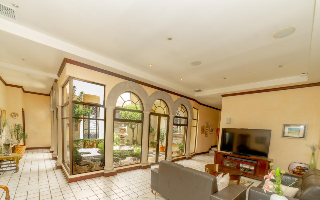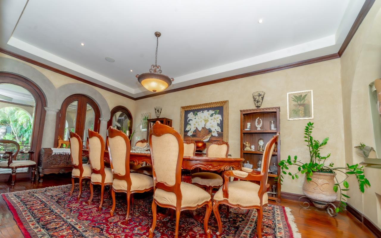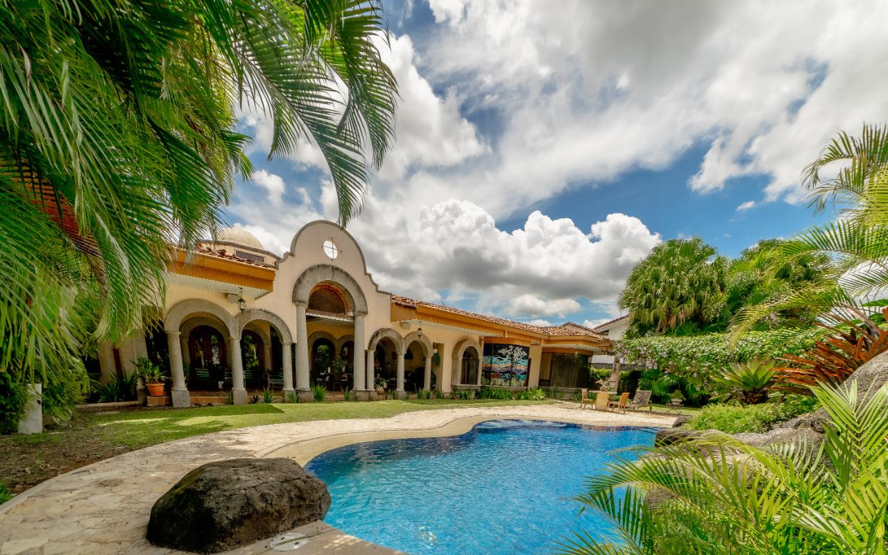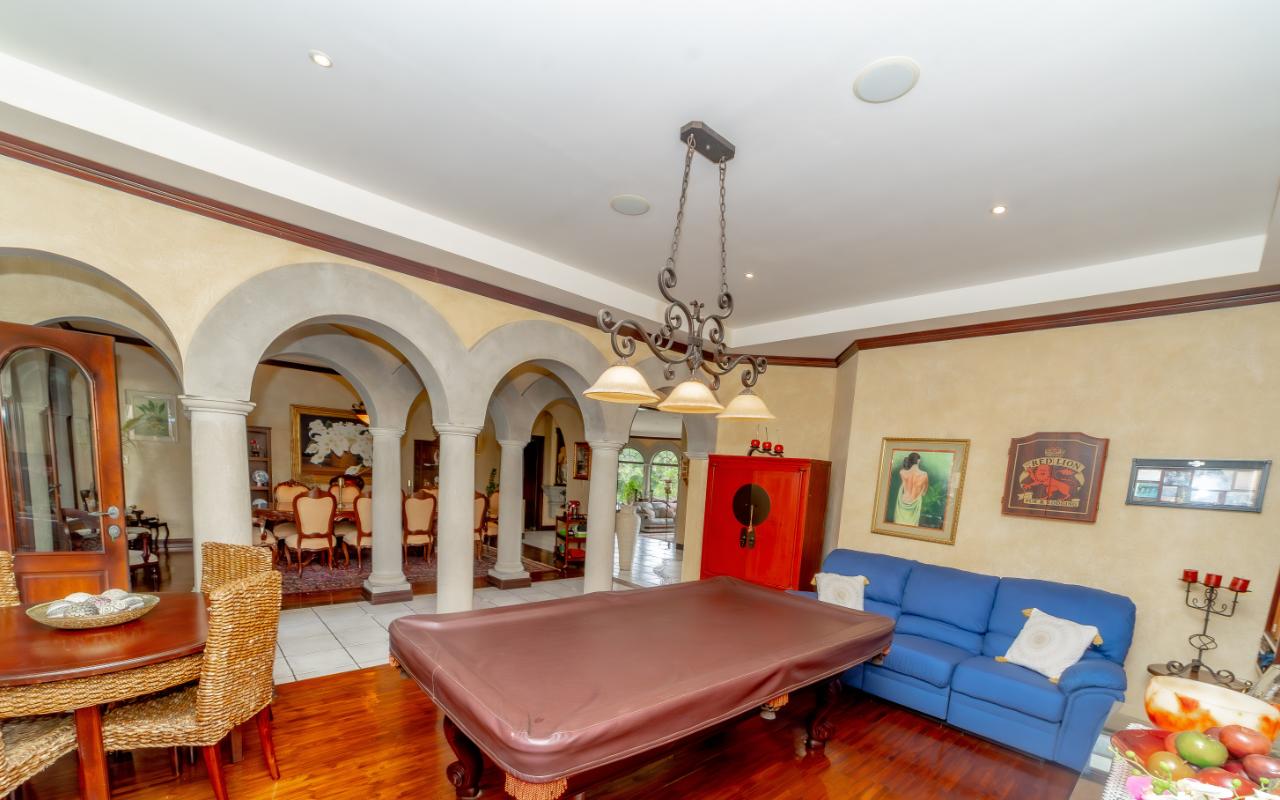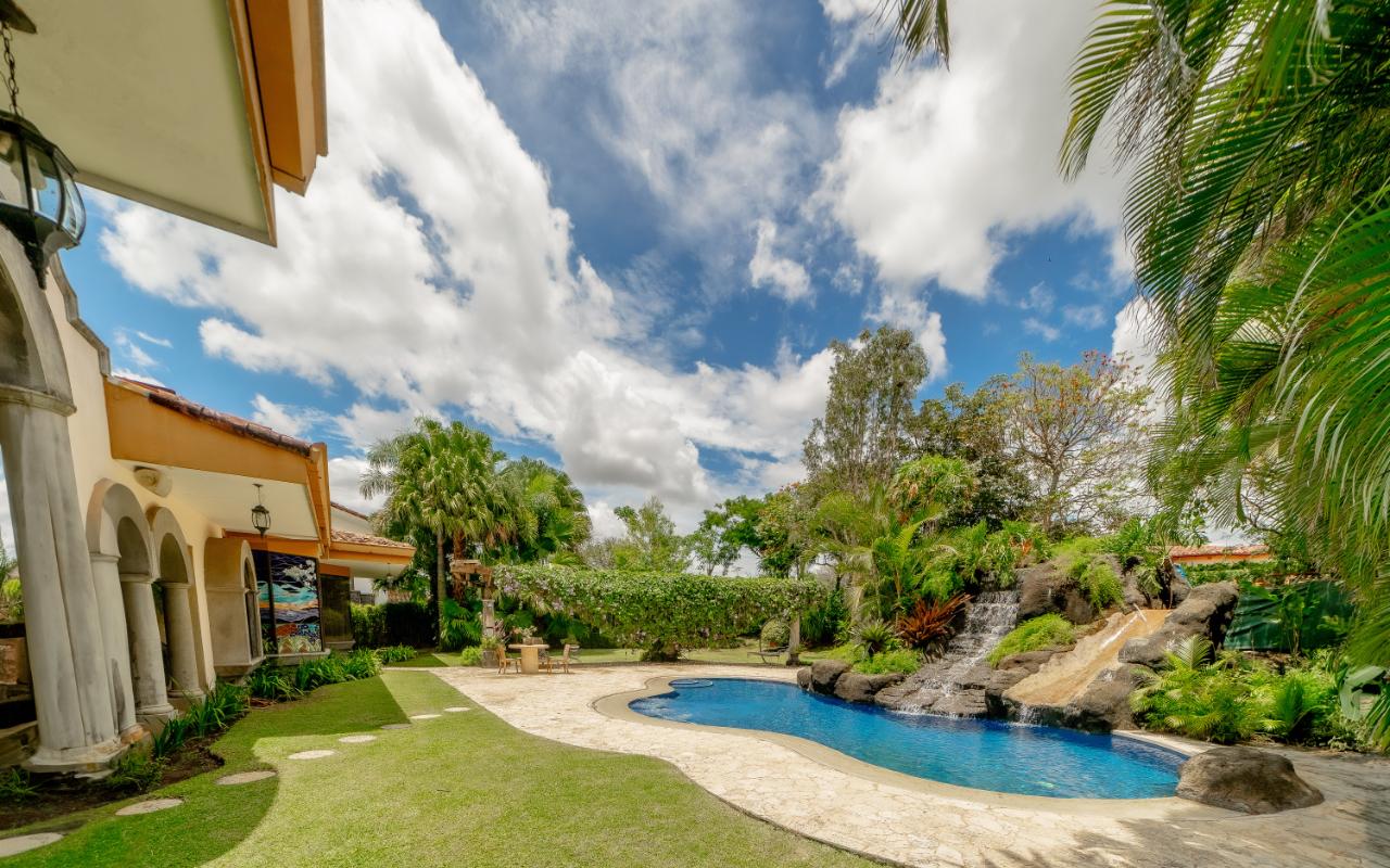 ID# 116803. Beautiful house for sale in Alajuela, La Cañada condominium, 900 sqm construction, 8.903 sqm land, 5 bedrooms, 6.5 baths, US$1.150.000. Extraordinary residence nestled in the prestigious La Cañada condominium of San Rafael, Alajuela, offering an unparalleled blend of opulence, sophistication, and serenity. Spanning over 900 square meters of meticulously designed living space on a sprawling 8.903 square meter lot, this luxurious home is a true sanctuary for the discerning buyer, seamlessly combining spaciousness, functionality, and top-of-the-line finishes. Upon entering the grand foyer, the sense of elegance is immediate, leading into expansive living and dining areas designed for both relaxation and entertaining, complemented by a dedicated pool table room and a cozy TV room. The social experience extends outdoors to a vast terrace ideal for gatherings, surrounded by a wide-open garden and a tranquil waterfall pool that enhances the serene atmosphere. At the heart of the home, the kitchen stands out as a culinary centerpiece, featuring generous counter space, high-end appliances, and refined cabinetry, along with a breakfast area that connects seamlessly to the terrace and garden views. The property is equipped with an intelligent lighting system controlled via iPad, allowing effortless customization of ambiance throughout the home, while an electric generator ensures uninterrupted comfort. Every detail reflects exceptional craftsmanship, from energy-efficient windows to a cozy fireplace that adds warmth and character. The master suite offers a private retreat with a luxurious Jacuzzi and a spacious walk-in closet, designed to balance comfort and privacy within the overall layout that thoughtfully separates social and private areas. Additionally, the property includes a separate second-floor apartment with private access through the garage, complete with its own bathroom, loft-style living area, and independent kitchen—ideal for guests or extended stays. Parking is well resolved with a three-car covered garage and additional space for three more vehicles, while gated access enhances security and peace of mind. Located in San Rafael, Alajuela, the home benefits from a strategic setting that combines natural beauty with convenience, offering proximity to urban services, high-end shopping, and easy access to national parks and outdoor attractions. This is a rare opportunity to acquire a truly remarkable residence that delivers scale, privacy, and lifestyle in one of Costa Rica’s most attractive residential environments.