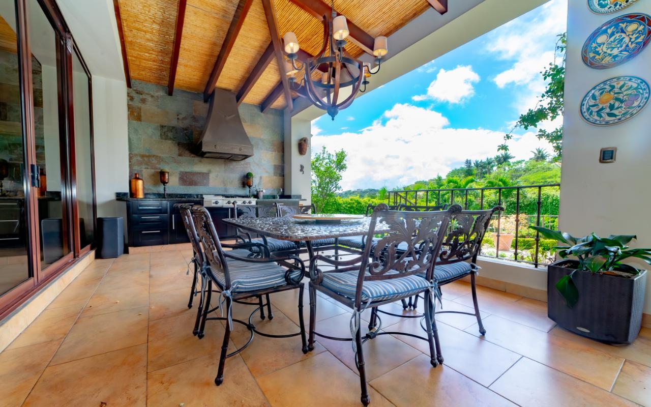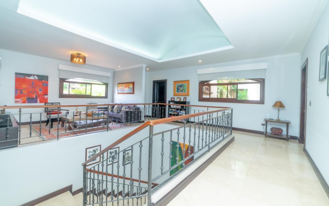ID# 116805. Luxury home for sale in Pozos, Santa Ana, Villa Real condominium, 625 sqm construction, 1.276 sqm land, 4 bedrooms, 5.5 baths, US$1.385.000. Tucked away amidst meticulously manicured gardens, this residence offers a true sanctuary for those seeking a life of luxury. Every detail has been thoughtfully curated, from the vaulted ceilings and marble floors to the seamless integration of spaces. Perfectly situated between the vibrant towns of Escazú and Santa Ana on San Jose's west side, this prime location grants you access to the best that Costa Rica's capital city has to offer. The moment you arrive at this stunning residence, you are greeted by a façade adorned in earth tones, evoking a sense of tranquility and harmony. The elegant combination of stone walls, tiled roofing, and high ceilings creates a timeless aesthetic that sets the stage for what lies beyond. As you make your way through the lush garden, you are welcomed by the grand entrance, where two beautifully crafted wood doors beckon you inside. Descending just two steps, the social area unfolds before you, seamlessly merging the living room and dining room into a cohesive space. The marble floors exude sophistication, while the glass sliding doors effortlessly connect these areas to the terrace, blurring the lines between indoor and outdoor living. The terrace itself is a masterpiece, boasting a delicate cane-detailed ceiling and exposed wood beams. Adorned with stone-covered walls and a built-in counter featuring a BBQ, sink, and storage space, this enchanting space is designed for entertaining in style. With the added convenience of retractable shades. From the terrace, an open distribution leads you to the captivating swimming pool area. The pool is adorned with unique stone detailing, creating an ambiance reminiscent of a natural lake. With its solar heating system, the pool can be enjoyed in any season. Ample space for sun tanning and unwinding awaits you, surrounded by the lush garden that seamlessly integrates with the pool area. A tall shrub hedge envelops the property, ensuring privacy and tranquility, allowing you to revel in the natural splendor of your surroundings. Back inside, the kitchen boasts a spacious layout with a central kitchen counter and an additional expansive, L-shaped counter, this culinary haven is a true delight. The Euromobilia furniture, along with high-end appliances, make this kitchen as functional as it is stylish. Sliding windows infuse the space with natural light and fresh air, enhancing the joy of cooking. An informal dining space seamlessly connects to the kitchen through glass sliding doors, offering breathtaking views of the pool and garden. Additionally, a double-swing door opens to the elegant dining room, creating a seamless flow for entertaining. The first floor features a secondary bedroom with a full bathroom, providing a comfortable space for guests. Adjacent to the main entrance, a guest bathroom adorned in marble veneer and featuring a marble countertop adds a touch of opulence to this home. As you ascend the staircase to the second floor, you are greeted by an elegant iron-forged detailing and a spacious TV room, serving as a gathering place outside the bedrooms. Each bedroom on this floor exudes timeless charm, with wood-detailed ceilings and elegant marble floors. The master suite is a true oasis, boasting vaulted ceilings with exposed wood beams and access to a private balcony. Immerse yourself in breathtaking mountain views, and indulge in the lavish comforts of a large walk-in closet and a deluxe bathroom adorned with marble veneer, a vanity, and a relaxing jacuzzi. Three additional secondary bedrooms, each with an ensuite bathroom and walk-in closet, offer unparalleled comfort and style. With wood ceilings and ivory-colored marble floors, these rooms exude a sense of understated luxury. Currently, one of the bedrooms is utilized as a multi-purpose room with a full bathroom, presenting endless possibilities as a gym, office, or additional bedroom. Practicality meets luxury with two garage spaces, strategically connected to the kitchen, as well as additional outdoor parking for two vehicles. The kitchen conveniently connects to the maid's room, complete with a bathroom, and the laundry area. Utopia's delightful garden is effortlessly maintained with an automatic irrigation system, ensuring that your outdoor haven remains lush and vibrant year-round. Villa Real is an exclusive community renowned for its charming cobbled streets and an array of exceptional amenities. The social area offers a BBQ clubhouse, a children's playground, and a lap pool, providing endless opportunities for relaxation and recreation. For the sports enthusiasts, a covered tennis court, a turf soccer field, and a basketball court are within easy reach. When special occasions arise, an indoor social area is available for celebrations or any other event you desire. Triple-level security, hiking trails, and direct access to Route 27 further enhance the allure of this prestigious community. Just minutes away, you'll find top-quality schools, services, and restaurants in the vibrant neighborhoods of Escazú and Santa Ana. Contact our esteemed real estate experts today to schedule a private viewing and begin your journey to owning this remarkable home.