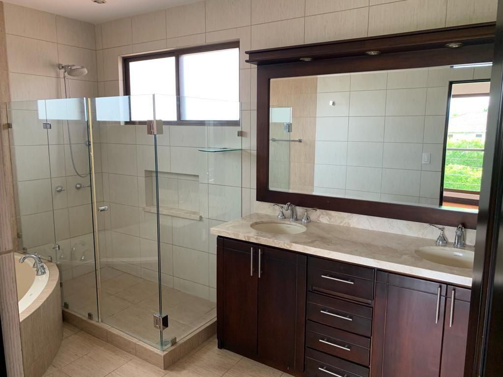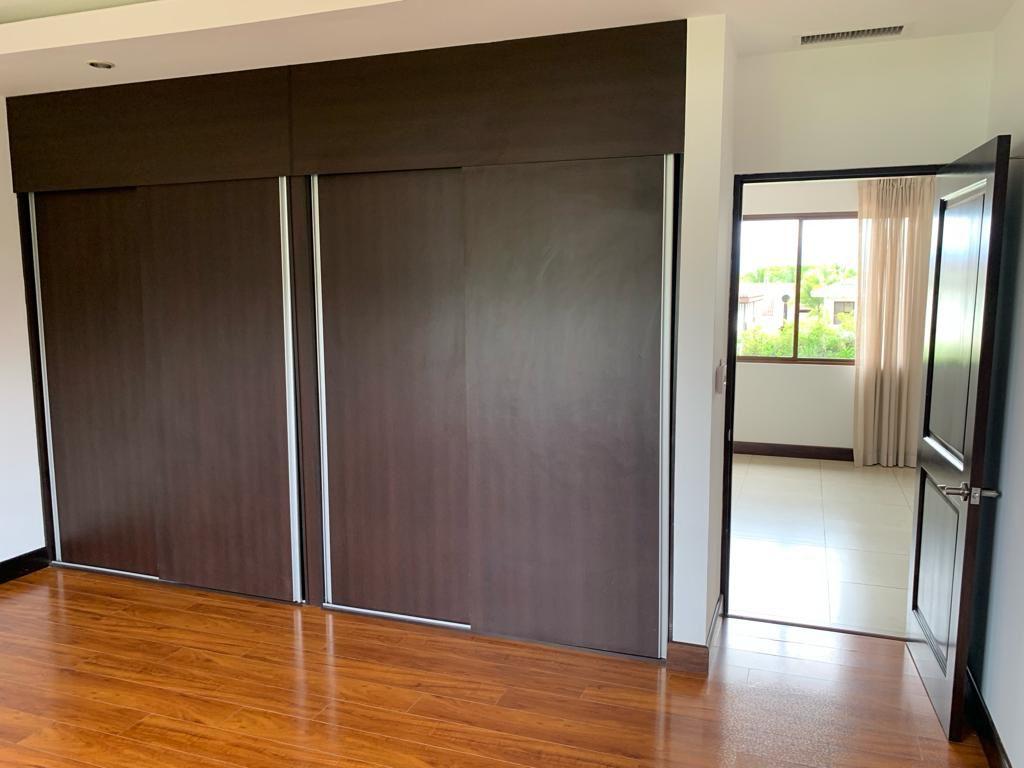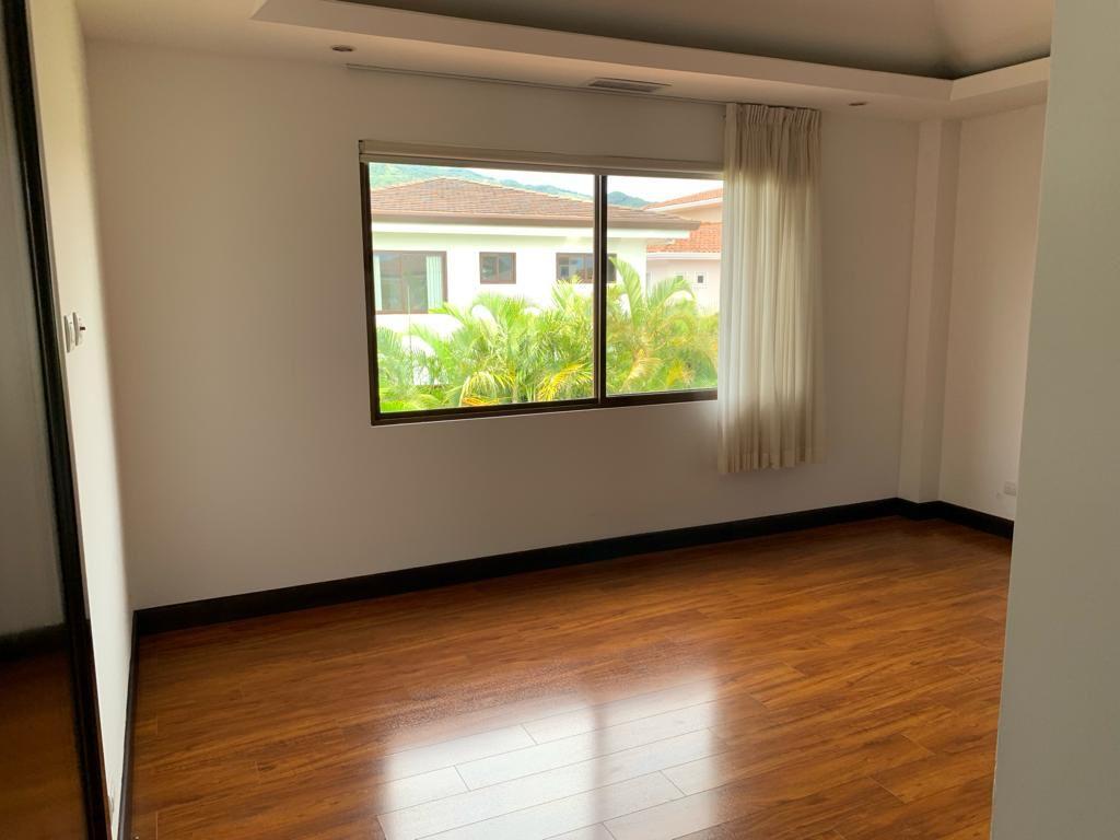 ID# 117018. Beautiful contemporary house for rent in Santa Ana, Hacienda del Sol condominium. 4 bedrooms, 3.5 bathrooms, rent US$5.400 (long term). Discover the perfect blend of contemporary style and modern conveniences in this rental home boasting a generous 435 m2 of construction space and a spacious 683 m2 lot. Upon entering, you'll be greeted by an elegant entrance foyer that invites you to explore every corner of this unique property. The ground floor unfolds as a harmonious and functional space. The living room, with its avant-garde design, is the ideal spot to relax and enjoy quality moments with friends and family. Adjacent to the living room, the dining area offers a bright and welcoming atmosphere for daily meals. From here, access the terrace and deck, perfect areas to relish outdoor living and the serenity of the surroundings. A thoughtfully designed office on the ground floor provides a quiet space for work or home study, while a half bathroom ensures the comfort of your guests. The kitchen, equipped with state-of-the-art appliances, is a dream for contemporary culinary enthusiasts. Complete with a two-car garage, laundry room, and service bathroom, this ground floor is a blend of functionality and style. The upper floor houses an impressive master bedroom with a walk-in closet and private bathroom, offering an exclusive retreat. Three spacious secondary bedrooms share two additional bathrooms, providing space and privacy for each family member. The TV room and a versatile attic complete this upper floor, offering additional areas for entertainment and creativity. This contemporary rental home goes beyond expectations by including all appliances, air conditioning, and curtains, providing a move-in-ready space. Additionally, the condominium offers premium amenities, such as a refreshing pool, BBQ area for social events, 24-hour security with controlled access, and a convenient location with easy access to shopping centers, hospitals, and entertainment hubs. Don't miss the opportunity to live in this exclusive contemporary home. Contact us today and discover a life of style and comfort in this modern enclave!