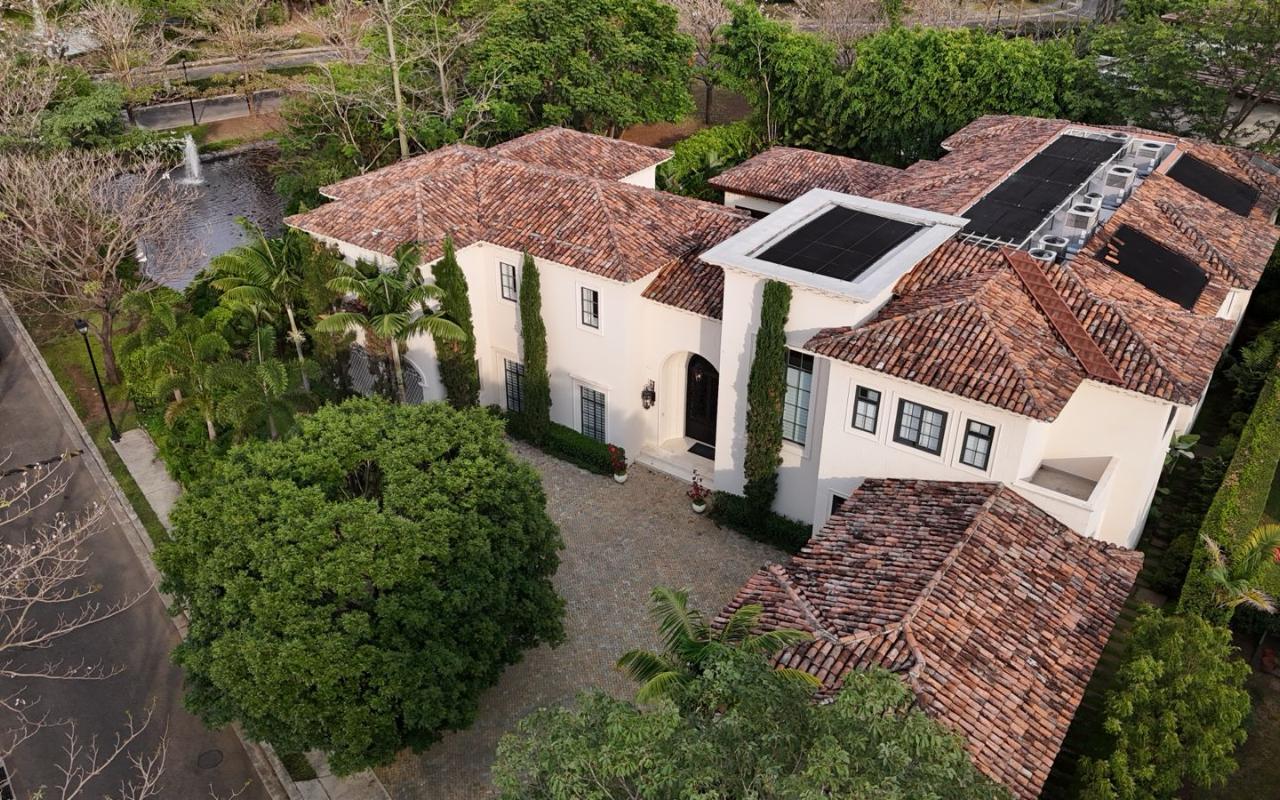 ID# 117134. Villa di Lago, Hacienda del Bosque condominium, Santa Ana. 4 bedrooms, 4 bathrooms, 1,055 sqm of construction, 1,531 sqm of land, US$4,850,000. Located in the exclusive La Hacienda del Bosque condominium in Santa Ana, one of Costa Rica's most prestigious private developments, Villa Di Lago blends the elegance of European classical architecture with contemporary designs using bespoke materials and furniture of the highest quality. Every detail of this residence has been meticulously crafted to reflect a sophisticated and timeless style. Upon entering the elegant front door, a vibrant interior unfolds, balancing distinction with impeccable interior design. Villa Di Lago showcases architectural grandeur with spacious rooms, select materials, and a design incorporating personalized elements, beautiful gardens, and a private pool. The residence offers luxury finishes and state-of-the-art amenities, ensuring optimal privacy and security. It features two living areas, a main dining room, a breakfast area integrated with a terrace, a gourmet kitchen, and a gym, all connected to tranquil gardens surrounding the property. The impressive heated pool, built with imported Colombian colonial stone, complements multiple terraces and an entertainment area with barbecue, pizza oven, and guest bathroom. The residence is situated in La Hacienda del Bosque, a residential project inspired by classic Costa Rican architecture, located in the Rio Oro district of Santa Ana. This exclusive development on nearly flat land of 23 hectares comprises 119 lots within a gated community, monitored by a single entrance. It offers amenities such as two tennis courts, a clubhouse with pools, a gym, spa, yoga room, playground, extensive green areas with integrated lakes and fountains. La Hacienda's clubhouse, designed with rustic elements and quality finishes, provides a relaxing space reminiscent of rural haciendas. With tile roofs, stucco, and wood details both inside and out, the clubhouse is divided into social and spa areas, connected by a corridor surrounding a central water feature amid vegetation for added privacy. Villa Di Lago is a unique property designed for discerning owners with refined international tastes. Its interiors are meticulously designed to blend comfort and functionality, while spacious open areas and tall windows provide luminosity and a sense of expansiveness. Well-maintained gardens and outdoor entertainment areas perfectly complement Costa Rica's tropical lifestyle, offering a private pool as a tranquil oasis. Additionally, its strategic location provides easy access to Route 27, leading to renowned hospitals like El Cima, shopping centers like Multiplaza Escazú, and the main beaches of Costa Rica's Pacific coast. The property is sold fully furnished with high-end furniture and selected art, offering new owners a luxurious, move-in-ready living experience.