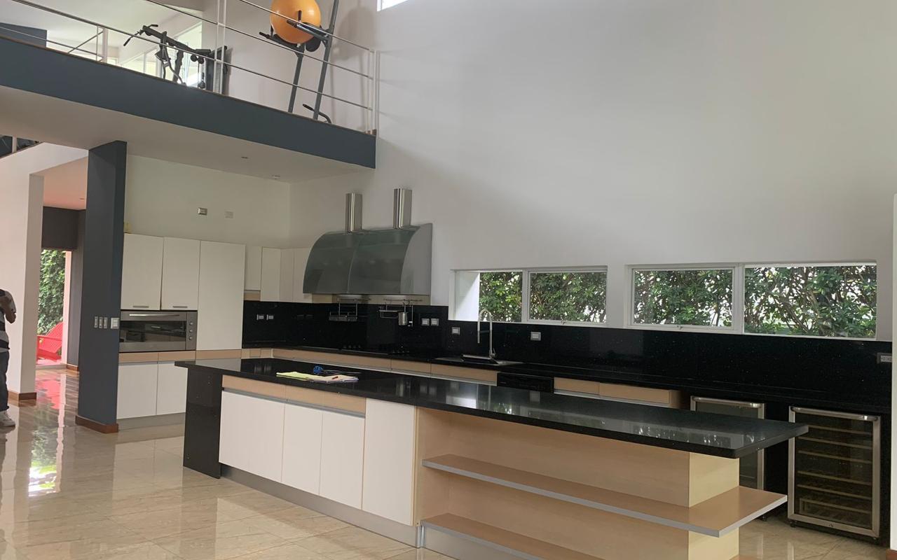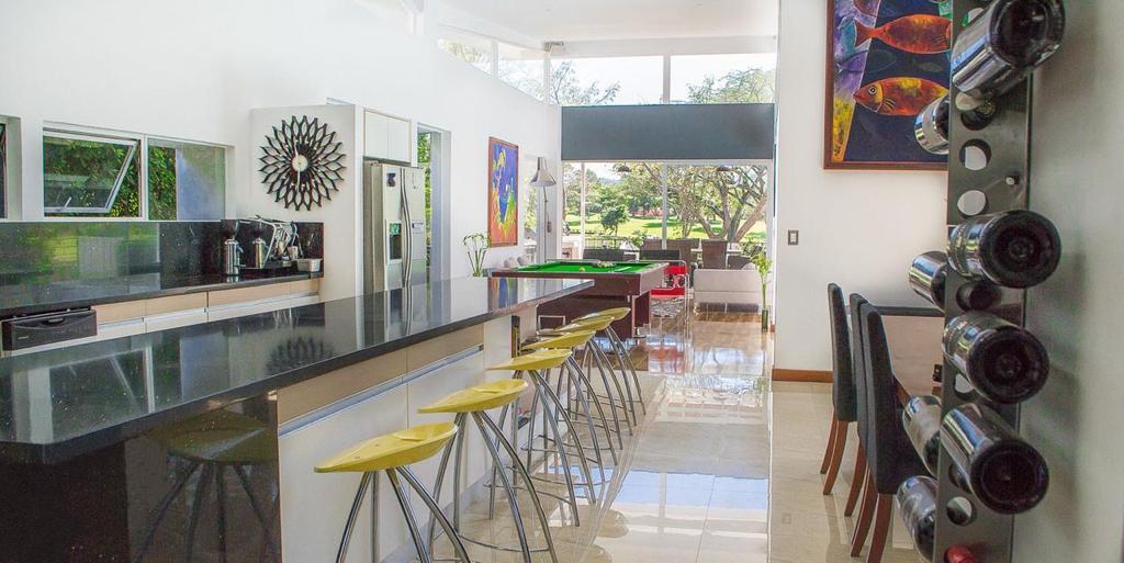 ID# 117167. Modern house for sale in Santa Ana. Valle del Sol Condominium. 4 bedrooms, 4 bathrooms, 720 m2 of construction, 980 m2 of land US$1,150,000. Located in the exclusive Valle del Sol residential area in Santa Ana, this impressive modern house stands out for its contemporary design, generous lighting, and open spaces that create a cozy and sophisticated atmosphere. With panoramic views of the golf course, this residence is an oasis of luxury and tranquility, offering an unparalleled living experience. The house, with a construction of 720 m2 on a spacious lot of 980 m2, is designed to maximize the comfort and lifestyle of its residents. Upon entering the property, you are greeted by a spacious living-dining area that seamlessly integrates with the kitchen and terraces, creating a continuous flow between indoor and outdoor spaces. This open area is ideal for entertaining and family living, allowing you to enjoy the views and natural light at all times. On the first level, in addition to the social areas, there are two complete bedrooms, each with its own bathroom. These bedrooms are designed to offer privacy and comfort, perfect for guests or family members who prefer to be on the ground floor. Moving up to the second level, you find the master bedroom, a suite that provides a private retreat with all amenities. This bedroom has a spacious bathroom and a walk-in closet, as well as spectacular views of the golf course. Next to the master suite, there is a television area, ideal for moments of relaxation and entertainment. The third level of the house adds an additional touch of exclusivity and functionality. Here you will find another bedroom along with a private office, making this space perfect for working from home without interruptions. This configuration is ideal for professionals who need a quiet and productive environment without sacrificing the comfort of living in a spacious and well-designed house. In addition to its four spacious bedrooms, the house offers four full bathrooms, strategically distributed for the comfort of all inhabitants. With capacity for six vehicles, the parking spaces are designed to accommodate both family and guests. Valle del Sol is one of the most sought-after residential areas in Santa Ana, known for its security, tranquility, and proximity to all the amenities this thriving area offers. Living here means being just minutes away from the best schools, shopping centers, restaurants, and services in the region. Additionally, access to main routes facilitates connection with other important areas of San José. The high-quality finishes and attention to detail are evident in every corner of this residence. From the marble floors to the modern appliances in the kitchen, every element has been carefully selected to ensure an exceptional level of living. This house in Valle del Sol is not just a place to live but a statement of style and comfort. Its modern design, along with the views of the golf course and the integration of spaces, create a unique environment that combines luxury and functionality. Whether to enjoy a full family life or to entertain friends and loved ones, this property offers everything you could desire and more. Santa Ana, with its pleasant climate and picturesque surroundings, is the perfect place for those seeking a tranquil yet connected life. The location of this house within such a prestigious residential area adds an additional layer of exclusivity and security, making this property an ideal choice for those who value good living. In summary, this modern house in Valle del Sol is an architectural gem that offers a perfect combination of luxury, comfort, and prime location. It is a unique opportunity for those seeking exclusivity in Santa Ana.