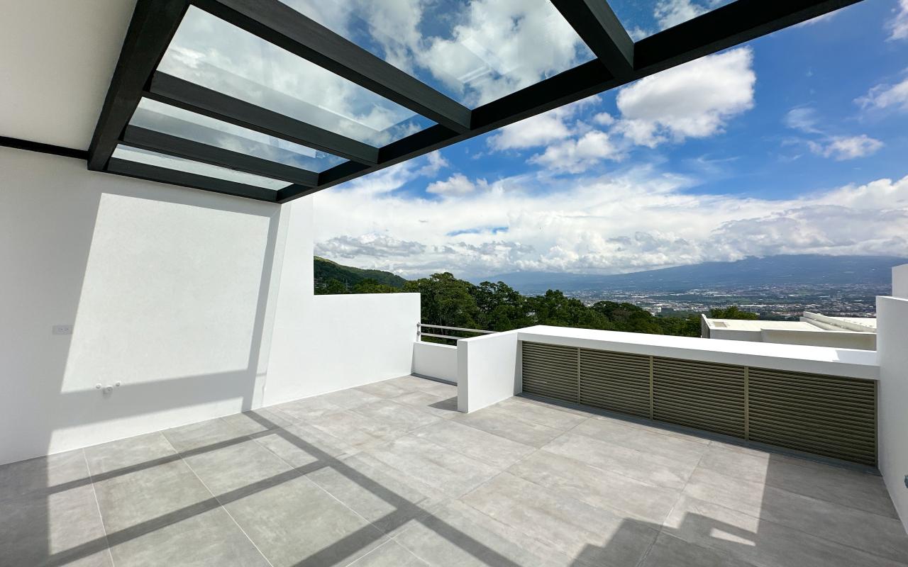 ID# 117281. Modern Home for Sale in Escazú. 4 Bedrooms, 4 Bathrooms, 275 m² of Construction, US$425,000. Located in the prestigious Bonavista Condominium in Escazú, this residence redefines the concept of luxury and comfort, offering a unique opportunity for those who value elegance, breathtaking views, and an unparalleled quality of life in the heart of Escazú. With its contemporary two-story design, this home has been crafted with exceptional attention to detail, providing an unmatched living experience. From the moment you step in, you’ll be captivated by its integrated social area, where the living room, dining room, and kitchen seamlessly flow in an open-concept design that promotes interaction and comfort. Modern, high-quality finishes stand out in every corner, while high ceilings and large windows allow natural light to flood the house, enhancing the warmth of the carefully distributed LED lighting. The terrace, a retreat to enjoy the majestic views of the Central Valley, is perfect for relaxing or hosting guests, complemented by a private jacuzzi that offers tranquil moments surrounded by nature. On the upper level, the master bedroom has been designed as an oasis of comfort, featuring a spacious walk-in closet and an en-suite bathroom with a double vanity that perfectly combines functionality and luxury. Additionally, the TV room offers a cozy environment for family moments or personal entertainment. The practical design of this property includes covered parking for two vehicles and a green area that adds a natural touch to the surroundings, creating a balance between modernity and connection with nature. Living in Bonavista Condominium grants access to one of the most exclusive communities in Escazú, renowned for its focus on quality of life. Its amenities are designed to meet the most demanding tastes, including a clubhouse for social events, a pool, gym, jacuzzi, sauna, playground, a lookout point with spectacular views, a spa area for relaxation, and a party area ideal for memorable celebrations. Security is a priority, with 24/7 surveillance and strict access controls ensuring a protected environment for all residents. Escazú itself is one of the most exclusive and sought-after areas in the Central Valley, known for its sophisticated lifestyle and strategic location with easy access to major roads like Route 27, quickly connecting to San José and other parts of the country. This district stands out for its high quality of life, proximity to prestigious educational institutions like Country Day School and Blue Valley School, and top-tier medical services such as Hospital CIMA. Additionally, it boasts a vibrant commercial and entertainment offering, with centers like Multiplaza Escazú and Avenida Escazú providing a wide array of shops, fine dining restaurants, cinemas, and activities for the whole family. Nature lovers will enjoy nearby parks, trails, and green spaces, perfect for hiking or outdoor sports, while the fresh climate of Escazú, combined with its tranquil and safe atmosphere, makes it one of the most attractive places to live. This residence in the Bonavista Condominium represents the perfect blend of design, exclusivity, and strategic location—a place where every detail has been carefully considered to offer a sophisticated and fulfilling lifestyle. This property is much more than a house; it is a sanctuary where luxury and comfort harmonize with nature and modernity, making it an ideal choice for those seeking an unparalleled living experience.