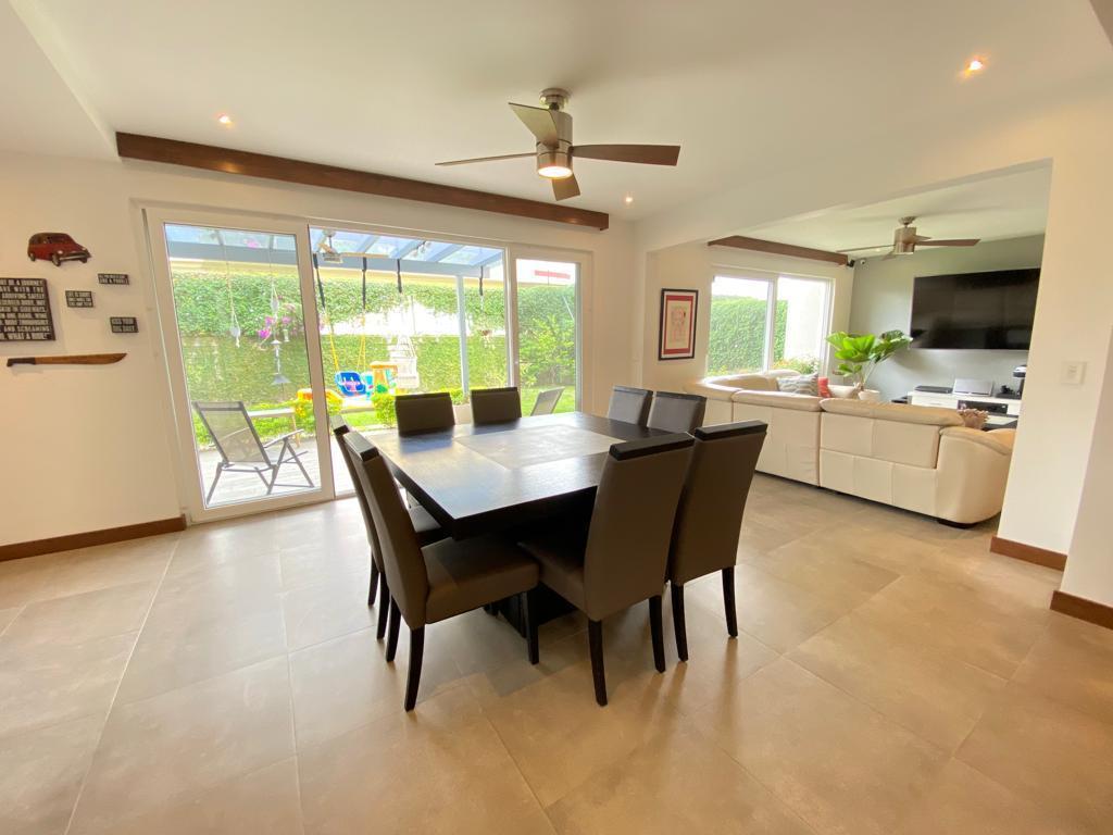 ID# 117319. House for sale, Guachipelín, Escazú. 3 bedrooms, 3.5 bathrooms, 350 m² of construction, 501 m² of land, US$525,000 or rental for US$3,500 per month. Casa Altara is a luxury residence for sale within the exclusive Altos de Guachipelín Condominium in Escazú, San José, Costa Rica. With a modern and functional design, this two-story property combines elegance, comfort, and spaciousness in one of the most sought-after areas in the country. Its privileged location provides quick access to shopping centers, prestigious schools, hospitals, and main roads, offering an unparalleled lifestyle. It features three bedrooms, each with a private bathroom and walk-in closet, ensuring privacy and comfort in every space. The intelligent layout maximizes natural light and ventilation, creating warm and welcoming environments. On the ground floor, the living room seamlessly integrates with the dining area and open-concept kitchen, which is equipped with high-quality finishes. Additionally, the property includes a service room with a full bathroom for added functionality. The outdoor area stands out with its garden, equipped with an automatic irrigation system, and a BBQ area, perfect for social gatherings and relaxation. It also features two storage rooms—one external and another mezzanine-style—providing ample storage space. The garage accommodates four vehicles, two of which are in a covered area for greater protection. Altos de Guachipelín Condominium offers a secure environment with 24/7 surveillance, extensive green areas, and an exclusive atmosphere. Its location allows quick access to Multiplaza Escazú, Avenida Escazú, and Plaza Tempo, where you can find restaurants, luxury shops, and entertainment options. It is also near top-tier hospitals such as CIMA Hospital and prestigious educational institutions like Saint Mary School and Mount View School. The connection to Route 27 facilitates access to San José and the Pacific Coast beaches, making it a strategic location for both living and investing.