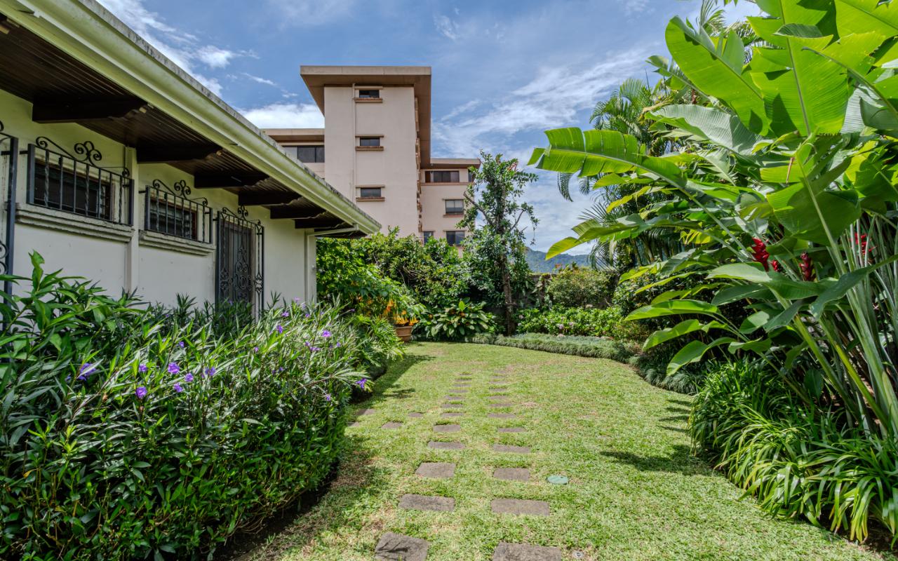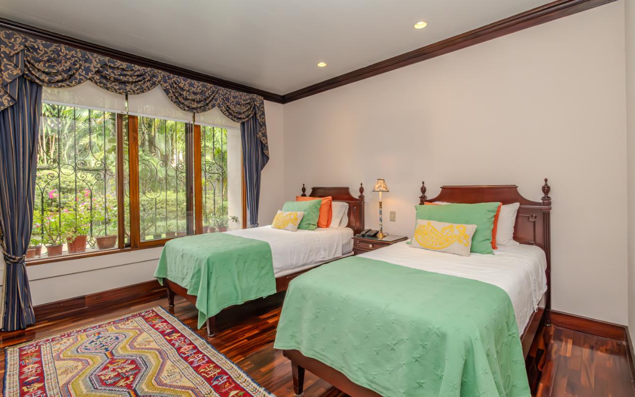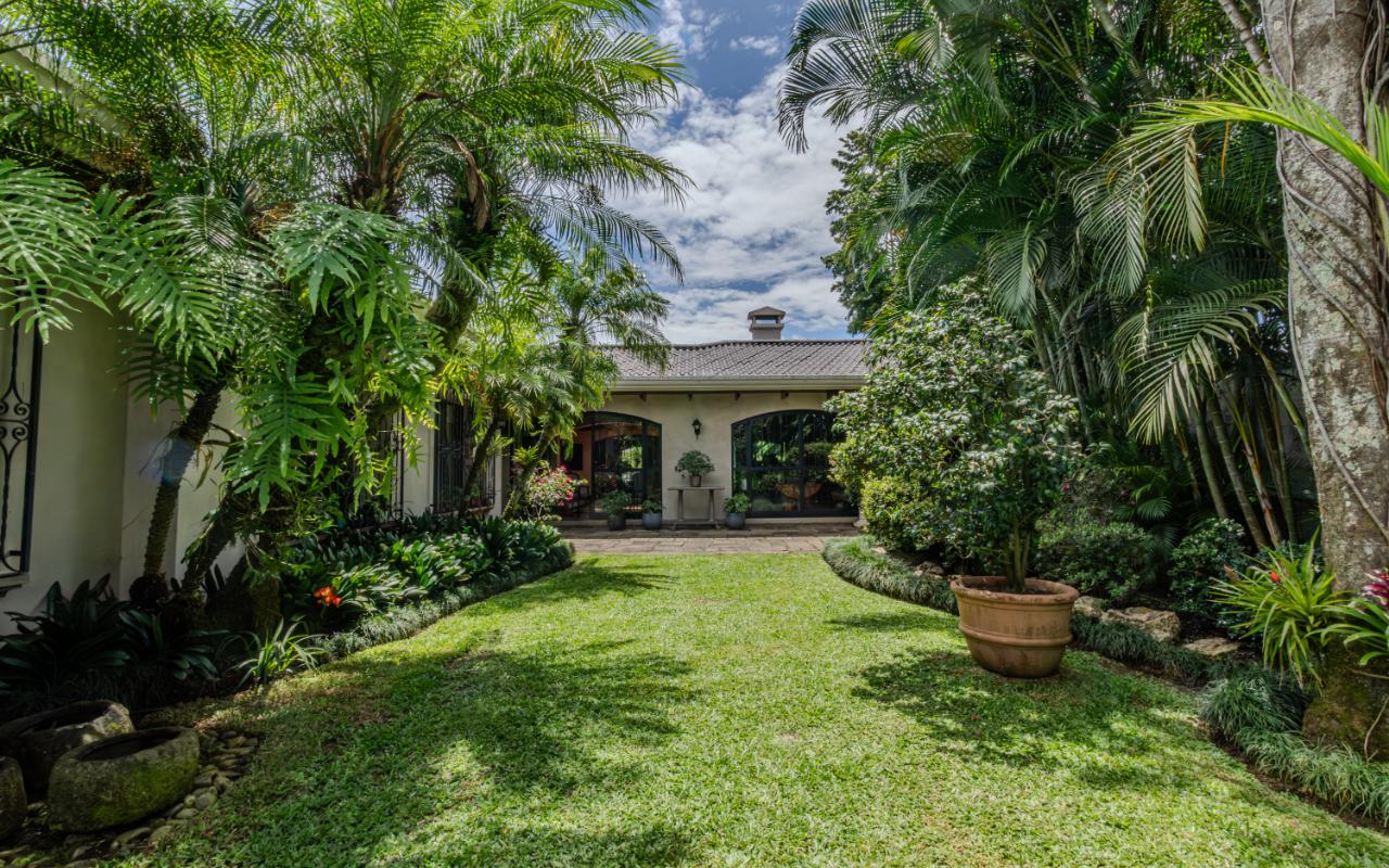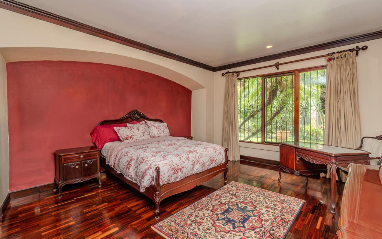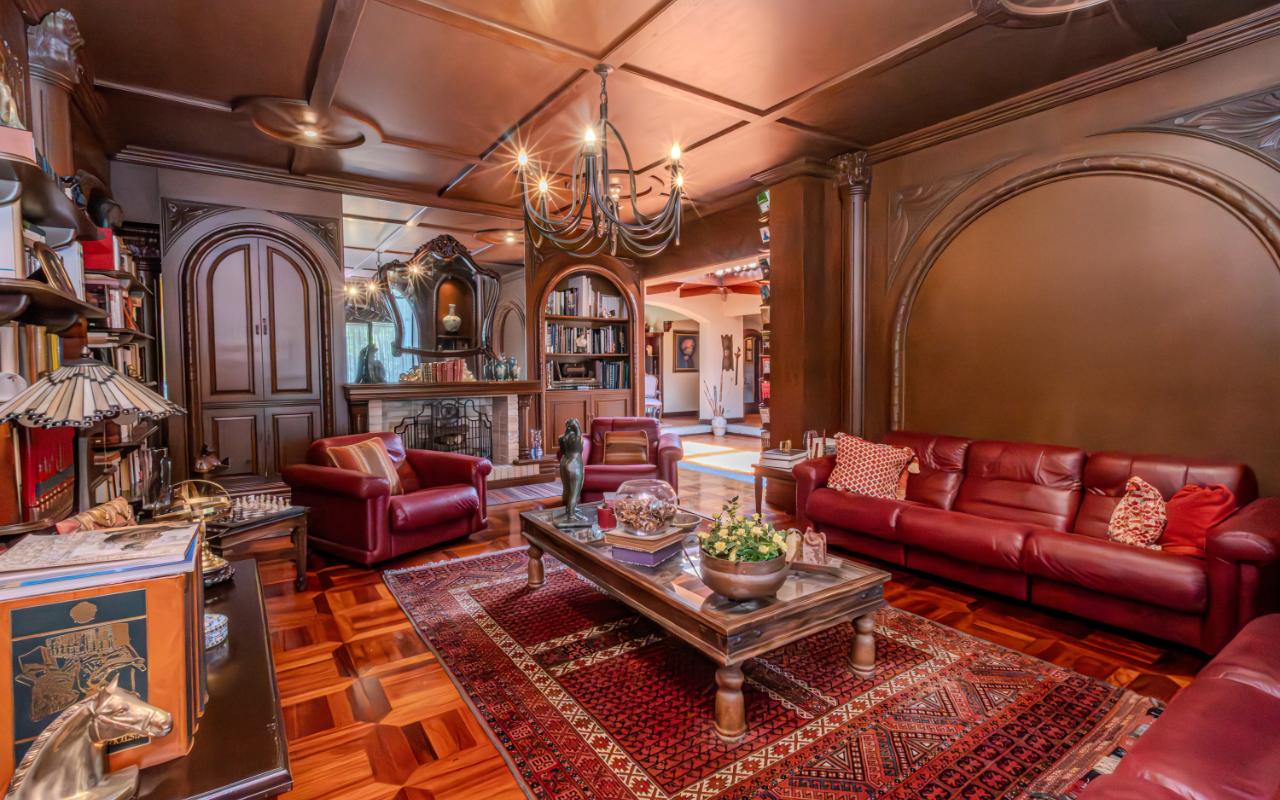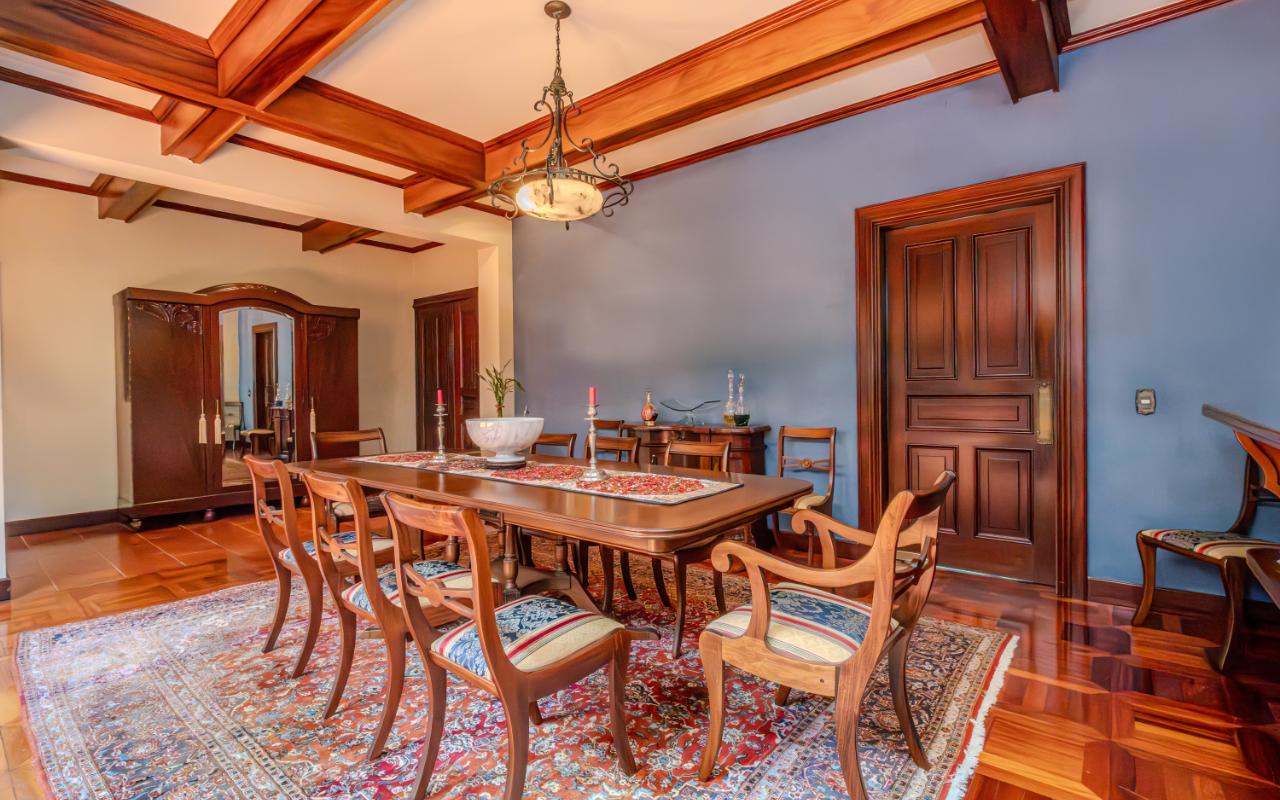ID# 117425. Private Sale: Prestigious Residence in Curridabat. 633 m² of construction, 1,418 m² of land, 4 bedrooms, 3.5 bathrooms. (Price available upon private request). Located in Curridabat, San José, one of the most exclusive and sought-after residential zones in the eastern sector of the capital, this 633 m² luxury residence on a 1,418 m² lot represents a rare opportunity within the high-end Costa Rica real estate market. Surrounded by lush, mature gardens that guarantee privacy and a deep connection with nature, this property combines neoclassical and colonial-inspired architecture with artisanal craftsmanship, generous interior proportions, and an atmosphere of timeless elegance that defines distinguished living in Curridabat luxury real estate. From the moment you enter, the home reveals its architectural character through an impressive foyer framed by carved wood columns and graceful arches that visually lead toward the main social areas. Double-height ceilings and large windows flood the interiors with natural light while opening panoramic views toward the gardens, creating a seamless indoor-outdoor living experience highly valued in luxury homes for sale in San José, Costa Rica. The main living room offers a warm yet sophisticated ambiance, highlighted by terracotta floors, exposed wooden ceilings, and a large arched window that connects directly to the outdoor terraces and greenery. Adjacent to the social area, a refined library with built-in shelves, decorative moldings, and a central fireplace evokes the elegance of a European residence, offering a private and intimate retreat for reading, work, or contemplation. The formal dining room stands out for its scale and brightness, enhanced by mirrored accents and fine wood finishes that create the perfect setting for entertaining guests and hosting memorable gatherings. The traditional kitchen, designed with solid wood cabinetry and handcrafted ceramic details, offers both functionality and character, reinforcing the home’s warm and family-oriented layout. This prestigious residence includes 4 spacious bedrooms and 3.5 bathrooms, all designed with generous proportions and garden views that ensure comfort, tranquility, and privacy—essential attributes in premium real estate in Curridabat. Outdoor living plays a fundamental role in the property’s design. Covered terraces, open walkways, and mature landscaping surround the home, creating a private oasis in the heart of the city, a highly desirable feature for buyers searching for large properties with land in San José. Strategically located, this home benefits from immediate proximity to Plaza del Sol, Momentum Pinares, Ciudad del Este, top private schools such as SEK International School and Saint Clare College, leading private clinics, supermarkets, fine dining, and fast access to main roads connecting to San Pedro, Escazú, and downtown San José. This privileged location significantly enhances the property’s value within the Costa Rica luxury property market. More than a residence, this is a property of distinction for buyers who appreciate the solidity of classical architecture, expansive land, privacy, and the prestige of owning a home in one of the most desirable neighborhoods of Curridabat, Costa Rica. Confidential pricing available upon request.