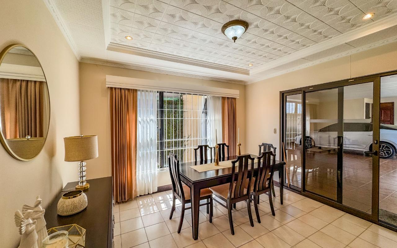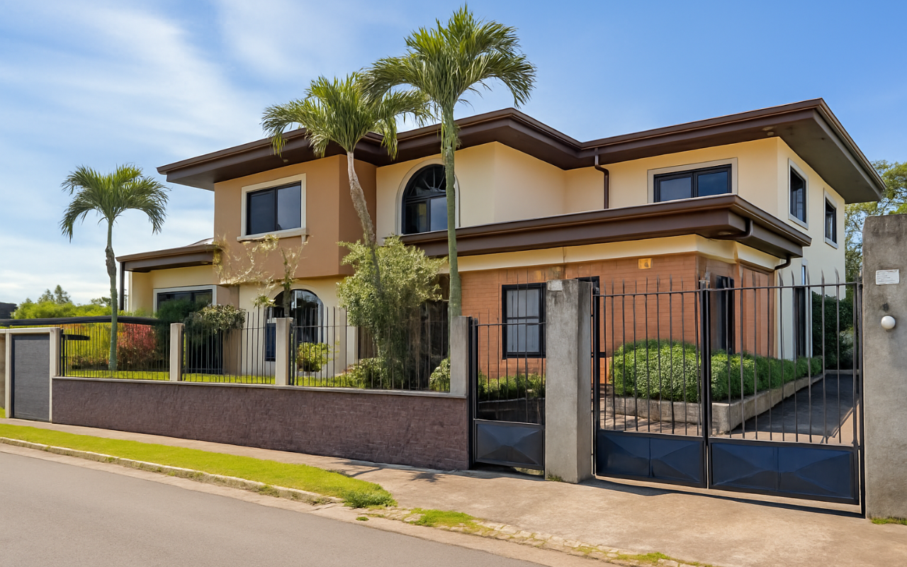 ID# 117450. House for Sale in La Guácima, Alajuela — 350 m² Construction | 756 m² Lot | US $480,000. This elegant two-story residence combines contemporary design, functionality, and a privileged location in one of the most convenient residential areas of La Guácima, Alajuela. Built on a 756 m² lot with a living area of 350 m², the property offers a perfect balance of space, privacy, and comfort—ideal for those seeking a peaceful and secure environment with excellent access to the main amenities of the western Central Valley. Its modern architecture stands out for its 15 cm solid concrete walls, the charm of clay brick, and decorative wood accents that add warmth and character. On the ground floor, the social areas are harmoniously integrated: a spacious living room, separate dining area, and breakfast nook connect to a functional kitchen with a pantry, ideal for family life. This level also includes a guest half bath, laundry room, and a private office that can be adapted as an additional bedroom. The second level houses three spacious bedrooms, all with built-in wooden closets; the primary suite features a walk-in closet and private bathroom, while the secondary bedrooms share a full bathroom and a cozy TV lounge that complements the private area. The house features gypsum and plaster ceilings, ceramic floors, and cross ventilation that keeps the interior fresh year-round. Outside, a garden surrounded by concrete perimeter walls ensures privacy and security, while the façade combines clean lines and natural materials that enhance its modern aesthetic. The covered garage accommodates two vehicles and includes an electric gate, alarm system, and perimeter electric fence. Its strategic location offers easy access to Plaza La Guácima, GSD International School, Auto Mercado, Farmacia Fischel, and Route 27, which connects quickly to Santa Ana, Escazú, and Juan Santamaría International Airport. This property represents an exceptional opportunity for those who value solid construction, contemporary design, and the convenience of living close to everything in a growing residential area with excellent value appreciation within the Greater Metropolitan Area.