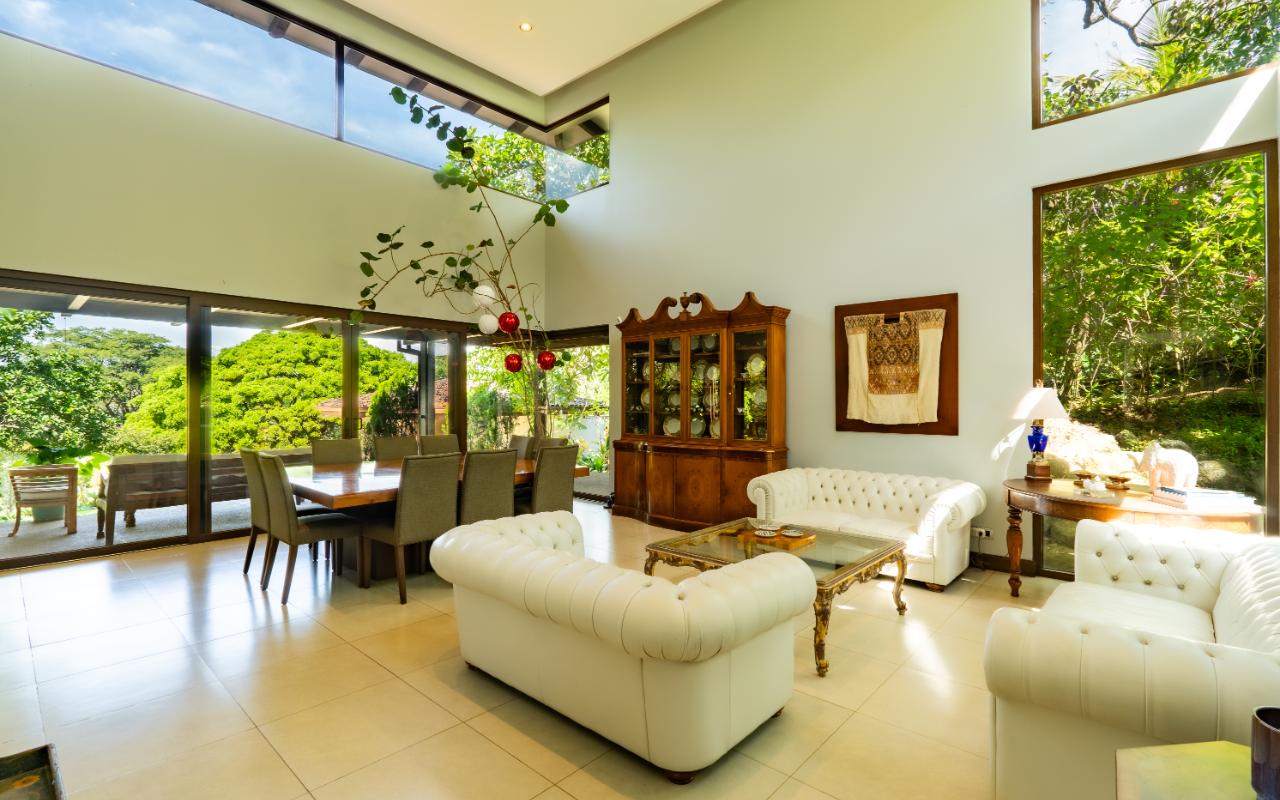 ID# 117462. Home for sale in La Guácima, Alajuela, Villas del Arroyo condominium. 7 bedrooms, 9 bathrooms, 794 m² of construction, 10,732 m² of land, US $1,750,000. Situated in one of the most peaceful, secure, and exclusive residential areas of La Guácima, this exceptional luxury estate in Costa Rica blends expansive indoor–outdoor living, absolute privacy, and a tropical architectural design that embraces its natural surroundings while delivering a true resort-style experience. Set on more than one hectare of fully usable land—an extremely rare offering in La Guácima real estate—the property features mature gardens, fruit trees, open recreational areas, and a serene environment, all within minutes of essential services such as Automercado, GSD International School, private clinics, restaurants, Los Reyes Country Club, and its 9-hole golf course. Its strategic location, with direct access to Route 27, allows for quick connectivity—just 20 minutes from Juan Santamaría International Airport (SJO) and approximately 45 minutes from the Pacific Coast—making it especially attractive for international buyers seeking accessibility without sacrificing privacy. The main residence offers 794 m² of solid construction with high-end finishes including porcelain tile, marble, caña brava, and refined artisanal details that enhance its tropical-modern character. The layout is designed for both comfort and functionality, featuring expansive social areas, a large kitchen, multiple living rooms, and five spacious ensuite bedrooms. Outdoor spaces are equally impressive, with a private pool, terrace, BBQ area, two event-ready ranchos, and a full soccer field, creating a lifestyle centered around entertainment and relaxation. Additionally, a secondary rancho structure includes two independent bedrooms, two full bathrooms, and storage rooms, providing flexibility for guests, rental income, or private workspaces. Located within Villas del Arroyo—known for its tranquility, large lots, and secure environment—this estate represents a rare investment opportunity combining scale, privacy, and long-term value in one of Costa Rica’s fastest-growing luxury markets.