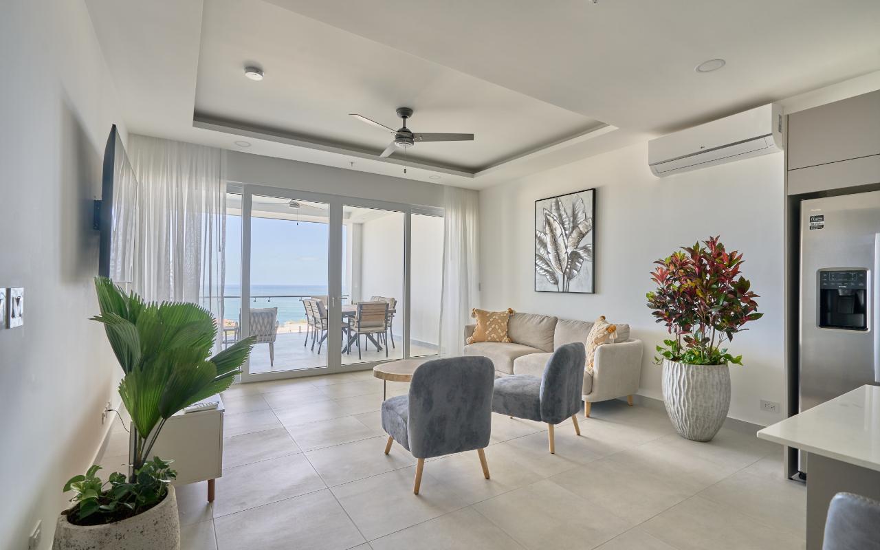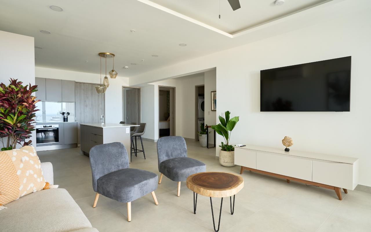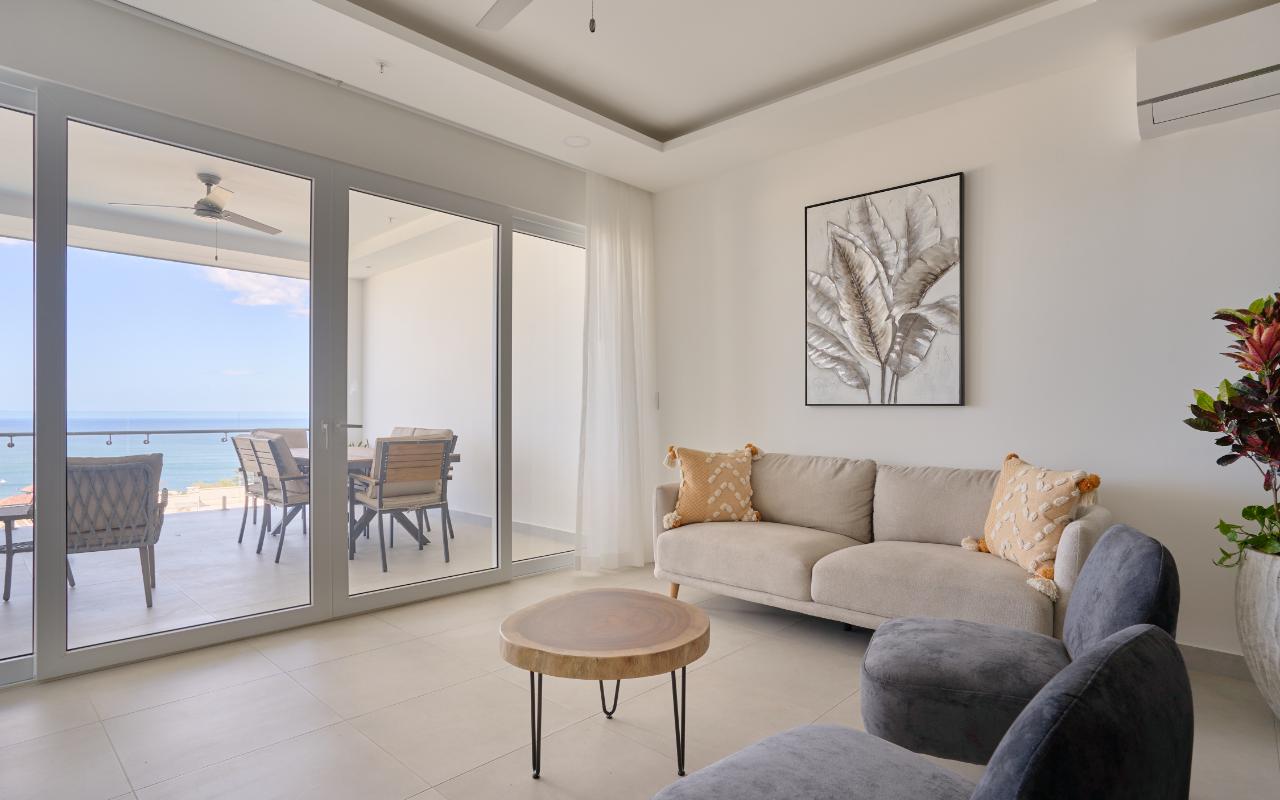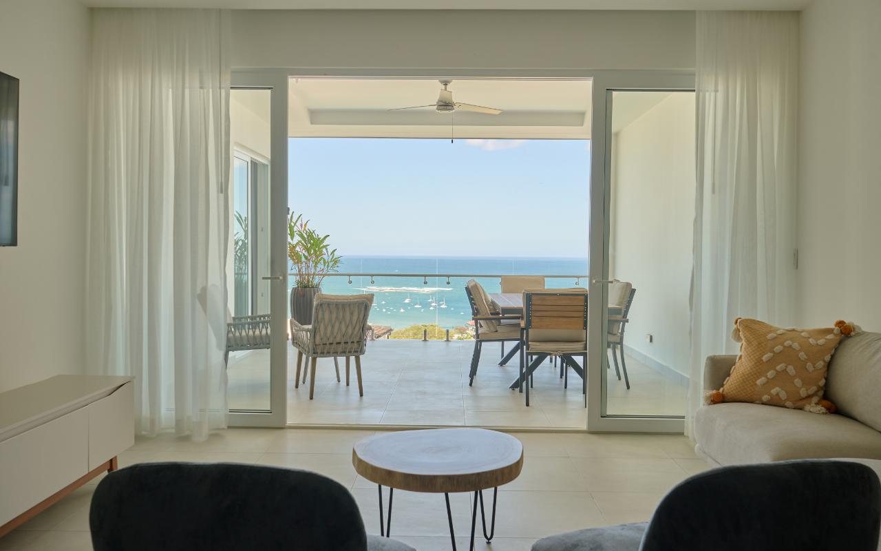 ID# 117463 - Experience elevated coastal living with this 2-bedroom, 2.5-bathroom - 134m2 luxury apartment for sale in Tamarindo, Costa Rica, located inside the prestigious Residencia LA VISTA, an exclusive ocean-view condominium positioned at Tamarindo’s highest lookout point. This architectural masterpiece redefines luxury real estate in Guanacaste, offering breathtaking panoramic views of the Pacific Ocean, surrounding mountains, and Tamarindo coastline, while remaining just minutes from Tamarindo Beach, Playa Langosta, world-class surf breaks, fine dining, boutique shopping, and vibrant nightlife. Designed for buyers seeking a refined tropical lifestyle or a high-end investment property in Costa Rica, this residence delivers a rare combination of privacy, scenery, and proximity to one of the country’s most dynamic beach destinations, with convenient access to the Daniel Oduber Quirós International Airport (Liberia Airport – LIR), approximately one hour away. This meticulously designed 2-bedroom residence (approximately 134.97 m²) embodies modern sophistication and functional elegance. The apartment welcomes you through a seamless open-concept layout integrating a contemporary kitchen, refined living room, and expansive glass openings that frame the ocean and flood the space with natural light. The social area flows directly onto a generous terrace, creating the perfect indoor-outdoor setting for entertaining, relaxing, or enjoying Tamarindo’s legendary sunsets and warm coastal breezes. The private area features a luxurious master bedroom with panoramic views, a spacious walk-in closet, and a beautifully appointed master bathroom designed as a spa-like retreat. A comfortable secondary bedroom offers privacy and versatility for guests or family, complemented by a full bathroom. A dedicated laundry room and an elegant guest half-bathroom enhance the residence’s functionality, making it ideal both for full-time living and luxury vacation use. Residencia LA VISTA stands out as one of the most exclusive real estate developments in Tamarindo, blending cutting-edge architecture with the region’s dramatic natural surroundings. From its elevated position, owners enjoy a peaceful, secure environment while remaining moments from iconic experiences such as surfing at Tamarindo Beach, snorkeling and swimming at Playa Langosta, eco-adventures, catamaran tours, sport fishing, and the natural beauty of Las Baulas National Marine Park. This strategic location strengthens both lifestyle appeal and long-term property value in one of Costa Rica’s most in-demand luxury coastal markets. Pricing for the 2-bedroom, 2.5-bathroom apartments starts at $779,000. Final price will vary depending on the specific apartment’s location within the building, floor level, orientation, and view. Each residence is individually positioned to maximize ocean visibility and exclusivity. This is more than an apartment — it is an elevated real estate opportunity in Tamarindo, Costa Rica. Whether you are seeking a luxury beach home, a second residence near Liberia International Airport, or a premium investment in Guanacaste’s thriving market, this 2-bedroom apartment at Residencia LA VISTA represents a rare chance to own at the pinnacle of Tamarindo living.