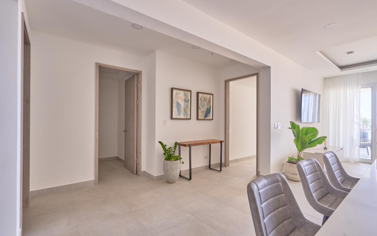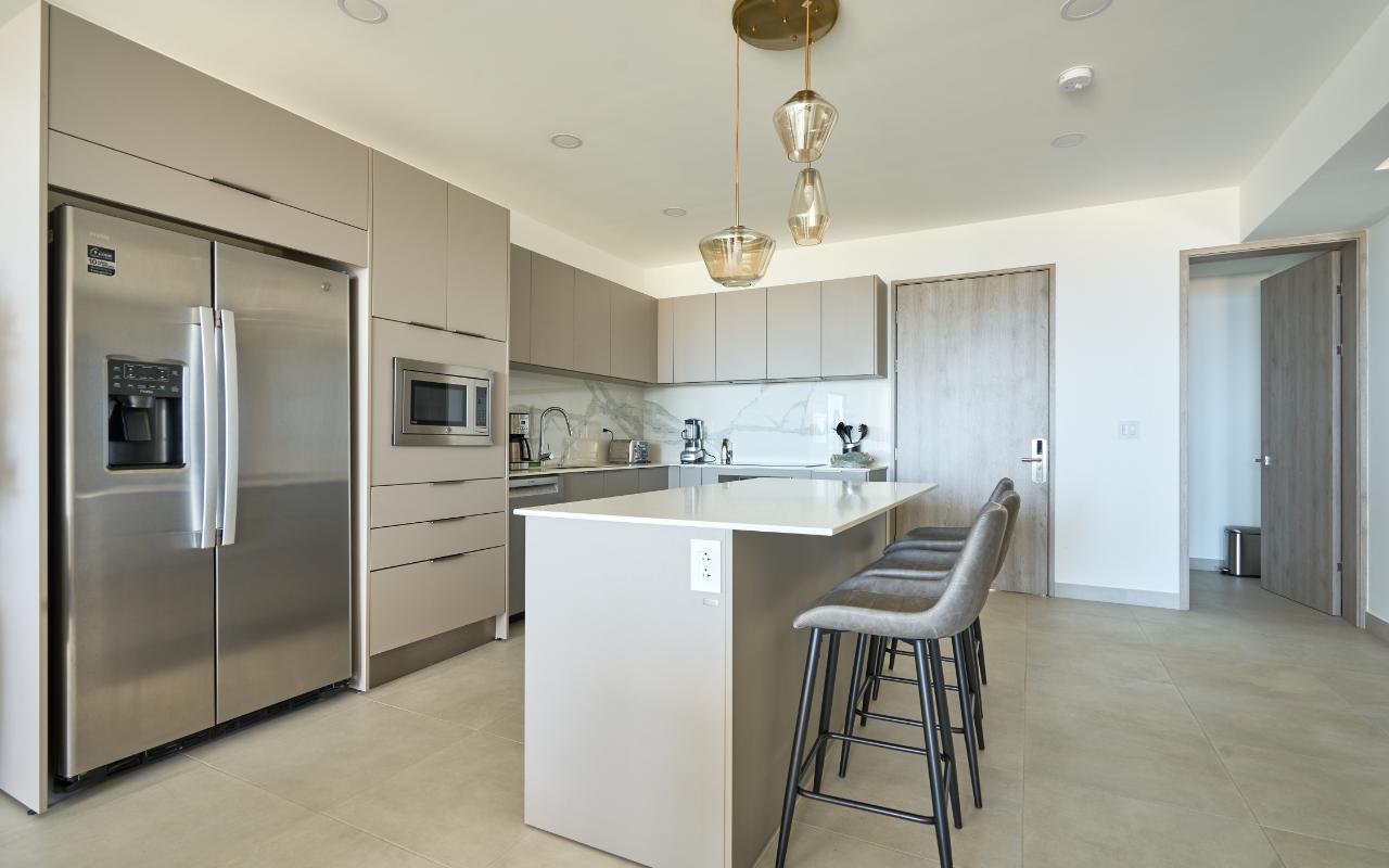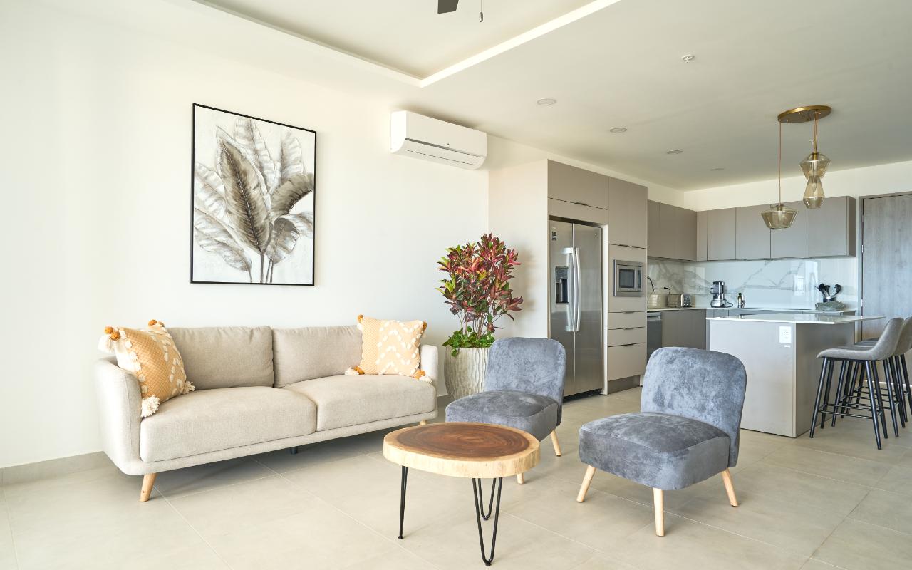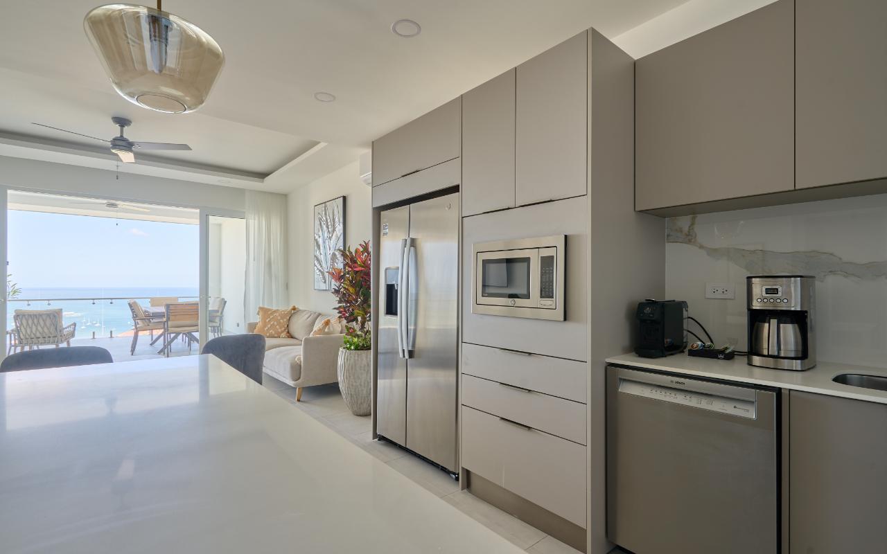 ID# 117463 - Experience elevated coastal living with this 2-bedroom, 2.5-bathroom - 134m2 luxury apartment for sale in Tamarindo, Costa Rica, located inside the prestigious Residencia LA VISTA, an exclusive ocean-view condominium positioned at Tamarindo’s highest lookout point. This architectural masterpiece redefines luxury real estate in Guanacaste, offering breathtaking panoramic views of the Pacific Ocean, surrounding mountains, and Tamarindo coastline, while remaining just minutes from Tamarindo Beach, Playa Langosta, world-class surf breaks, fine dining, boutique shopping, and vibrant nightlife. Designed for buyers seeking a refined tropical lifestyle or a high-end investment property in Costa Rica, this residence delivers a rare combination of privacy, scenery, and proximity to one of the country’s most dynamic beach destinations, with convenient access to the Daniel Oduber Quirós International Airport (Liberia Airport – LIR), approximately one hour away. This meticulously designed 2-bedroom residence (approximately 134.97 m²) embodies modern sophistication and functional elegance. The apartment welcomes you through a seamless open-concept layout integrating a contemporary kitchen, refined living room, and expansive glass openings that frame the ocean and flood the space with natural light. The social area flows directly onto a generous terrace, creating the perfect indoor-outdoor setting for entertaining, relaxing, or enjoying Tamarindo’s legendary sunsets and warm coastal breezes. The private area features a luxurious master bedroom with panoramic views, a spacious walk-in closet, and a beautifully appointed master bathroom designed as a spa-like retreat. A comfortable secondary bedroom offers privacy and versatility for guests or family, complemented by a full bathroom. A dedicated laundry room and an elegant guest half-bathroom enhance the residence’s functionality, making it ideal both for full-time living and luxury vacation use. Residencia LA VISTA stands out as one of the most exclusive real estate developments in Tamarindo, blending cutting-edge architecture with the region’s dramatic natural surroundings. From its elevated position, owners enjoy a peaceful, secure environment while remaining moments from iconic experiences such as surfing at Tamarindo Beach, snorkeling and swimming at Playa Langosta, eco-adventures, catamaran tours, sport fishing, and the natural beauty of Las Baulas National Marine Park. This strategic location strengthens both lifestyle appeal and long-term property value in one of Costa Rica’s most in-demand luxury coastal markets. Pricing for the 2-bedroom, 2.5-bathroom apartments starts at $779,000. Final price will vary depending on the specific apartment’s location within the building, floor level, orientation, and view. Each residence is individually positioned to maximize ocean visibility and exclusivity. This is more than an apartment — it is an elevated real estate opportunity in Tamarindo, Costa Rica. Whether you are seeking a luxury beach home, a second residence near Liberia International Airport, or a premium investment in Guanacaste’s thriving market, this 2-bedroom apartment at Residencia LA VISTA represents a rare chance to own at the pinnacle of Tamarindo living.