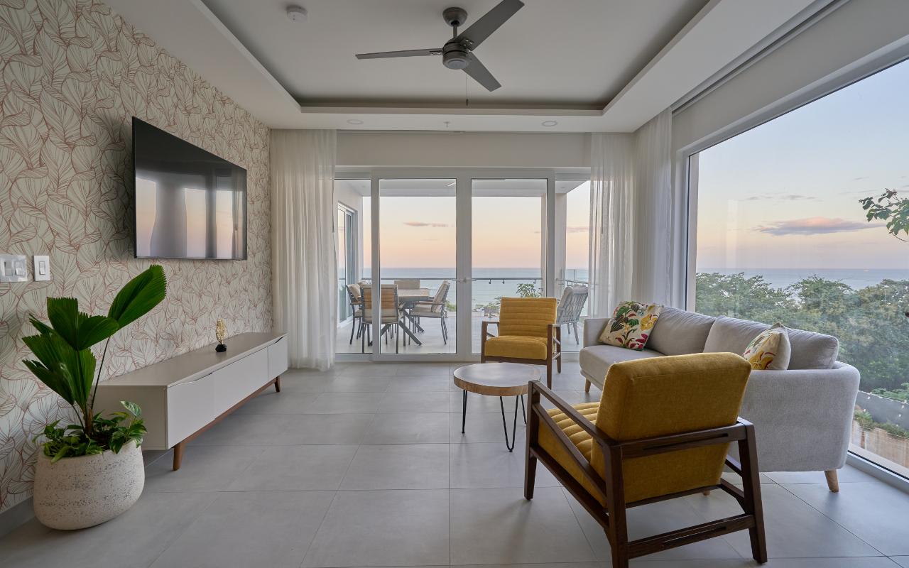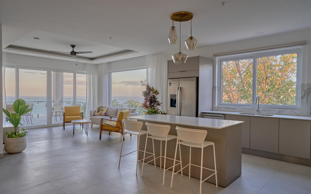 ID#117464 | 3-Bedroom Luxury Ocean View Apartment for Sale in Tamarindo, Costa Rica – Residencia LA VISTA. Experience elevated coastal living with this 3-bedroom, 3.5-bathroom luxury apartment for sale in Tamarindo, Costa Rica, offering approximately 182 m² (1,959 sq ft) of refined interior space inside the prestigious Residencia LA VISTA. This exclusive ocean-view condominium is positioned at Tamarindo’s highest lookout point, delivering breathtaking panoramic views of the Pacific Ocean, surrounding mountains, and the Tamarindo coastline. Located just minutes from Tamarindo Beach, Playa Langosta, world-class surf breaks, fine dining, boutique shopping, and vibrant nightlife, this residence represents an exceptional opportunity within one of Costa Rica’s most sought-after luxury real estate markets. With convenient access to the Daniel Oduber Quirós International Airport (Liberia Airport – LIR), approximately one hour away, this property is ideal for international buyers seeking lifestyle, accessibility, and long-term investment value. This meticulously designed 3-bedroom residence embodies modern sophistication, generous proportions, and functional elegance. The apartment welcomes you into a seamless open-concept layout integrating a contemporary kitchen, an elegant living room, and expansive glass openings that frame the ocean and flood the interior with natural light. The social area flows directly onto a spacious terrace, creating an exceptional indoor-outdoor setting ideal for entertaining, relaxing, or enjoying Tamarindo’s legendary sunsets and coastal breezes. A private balcony further enhances the living experience, offering additional outdoor space to connect with the surrounding landscape. The private area features a luxurious master bedroom with panoramic ocean views, a spacious walk-in closet, and a beautifully appointed master bathroom designed as a spa-like retreat. A comfortable second bedroom is complemented by a full bathroom, while a third bedroom with its own private bathroom provides excellent versatility for guests, family, or high-end vacation use. A dedicated laundry room and an elegant guest half-bathroom complete the layout, enhancing everyday comfort and functionality. Residencia LA VISTA stands out as one of the most exclusive real estate developments in Tamarindo, seamlessly blending cutting-edge architecture with Guanacaste’s dramatic natural surroundings. From its elevated position, owners enjoy a peaceful, secure environment while remaining moments from iconic experiences such as surfing at Tamarindo Beach, snorkeling and swimming at Playa Langosta, eco-adventures, catamaran tours, sport fishing, and the protected landscapes of Las Baulas National Marine Park. This strategic location strengthens both lifestyle appeal and long-term property value in one of Costa Rica’s most in-demand luxury coastal destinations. Pricing for the 3-bedroom, 3.5-bathroom apartments starts at $939,000. Final price will vary depending on the specific apartment’s location within the building, floor level, orientation, and view. Each residence is individually positioned to maximize ocean visibility, privacy, and exclusivity. This is more than an apartment — it is an elevated real estate opportunity in Tamarindo, Costa Rica. Whether you are seeking a spacious luxury beach home, a second residence near Liberia International Airport, or a premium investment in Guanacaste’s thriving real estate market, this 3-bedroom apartment at Residencia LA VISTA offers a rare chance to own at the pinnacle of Tamarindo living.