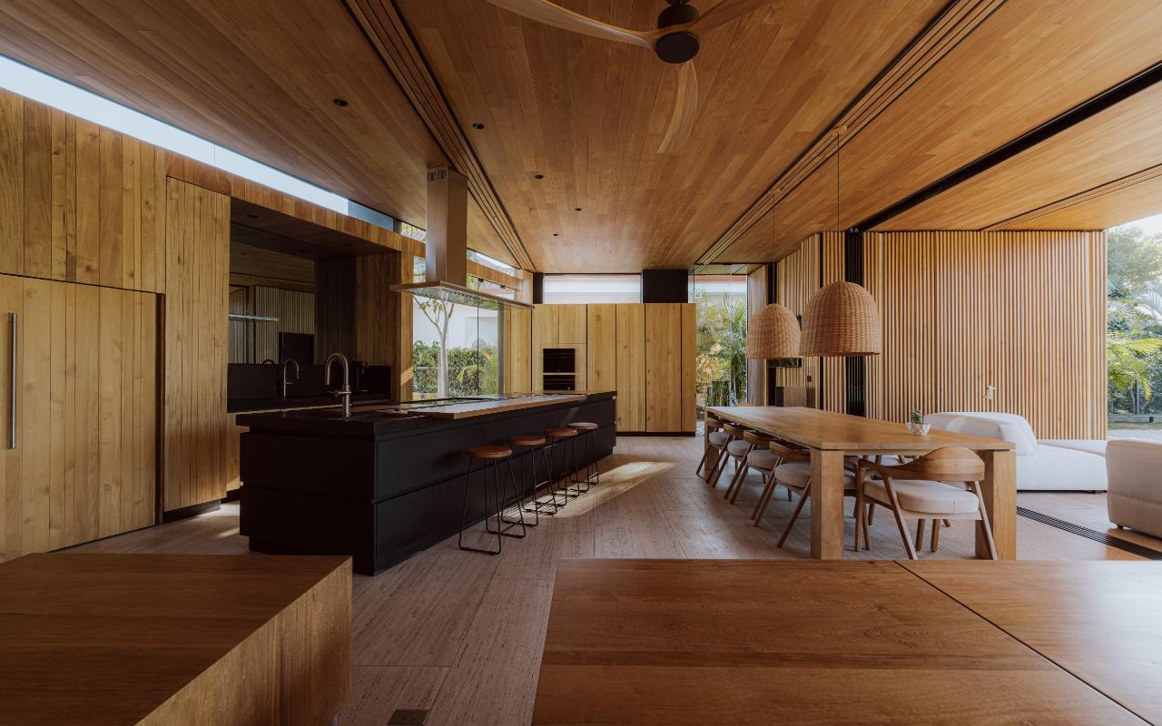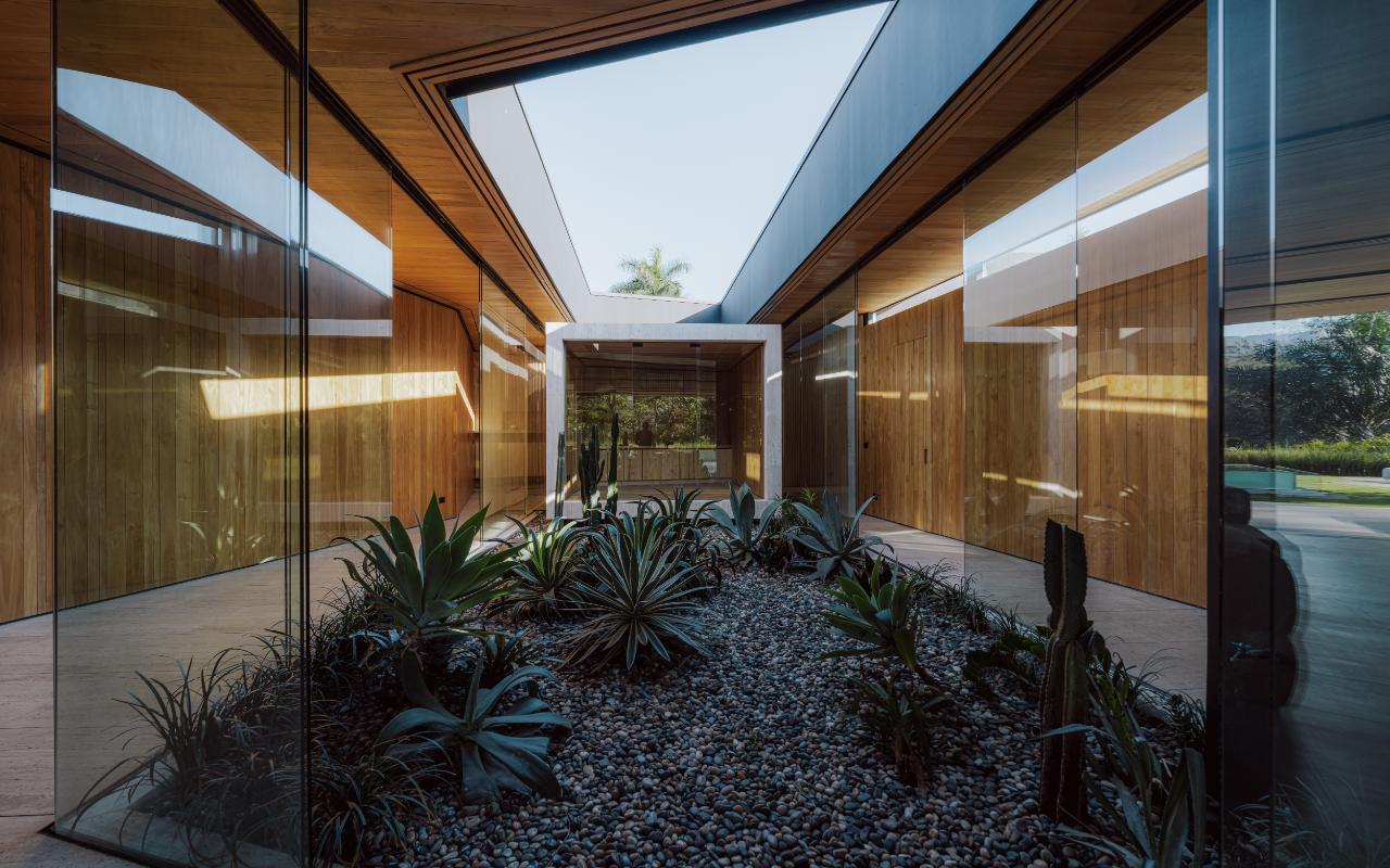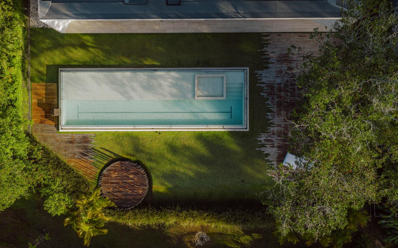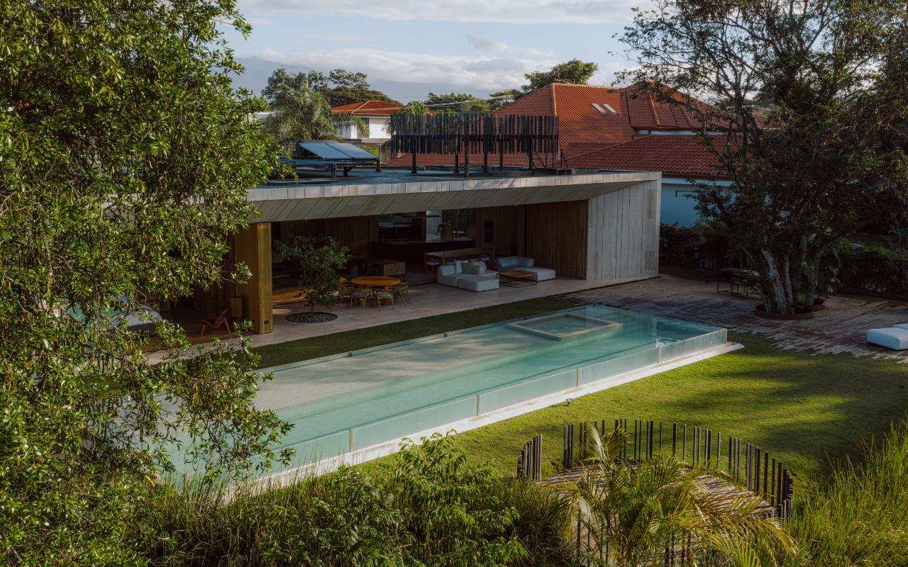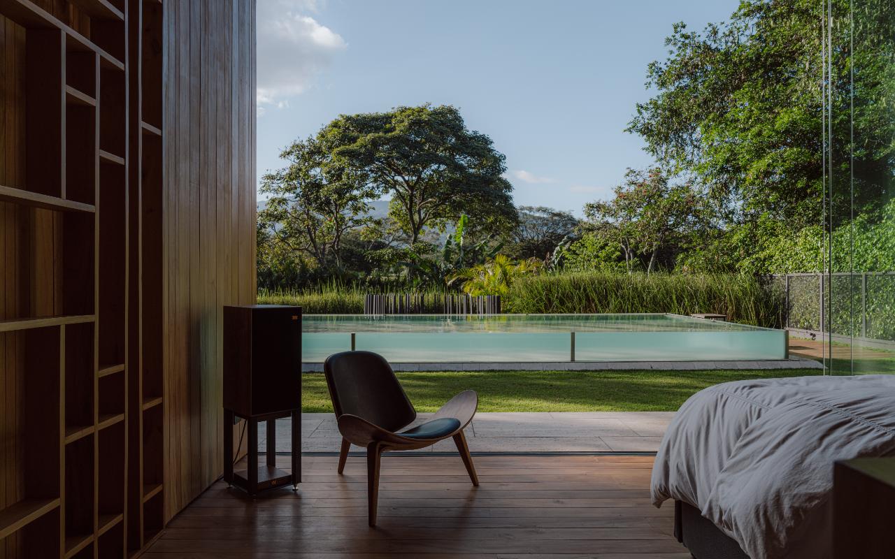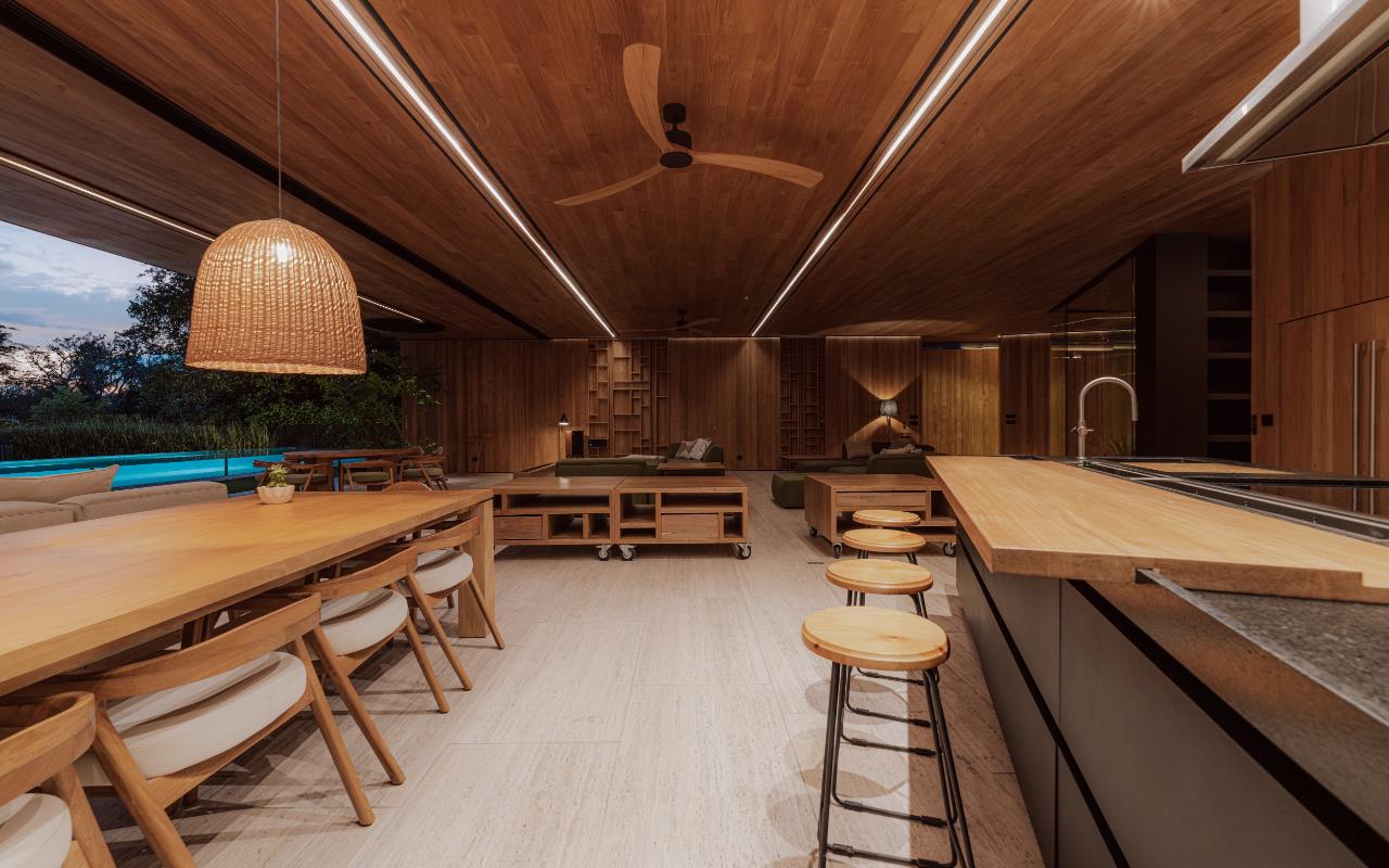 ID# 117469. Single-Level Architectural Masterpiece in Valle del Sol, Costa Rica. I 1,504 m² lot I 1,255 m² total construction. (INQUIRE PRIVATELY FOR PRICING). This is not a house. This is a statement. Set on a 1,504 m² lot with 1,255 m² of total construction, Casa Brutale stands among the most architecturally significant residences ever offered for sale in Valle del Sol, Santa Ana—the premier golf community on the west side of San José. Conceived on one single level with zero steps (only a teak sky deck above), the home captures elevated, uninterrupted views over the protected golf course green area and lake, delivering rare privacy, visual scale, and a constant connection with nature that defines Costa Rica real estate at its finest. The architectural language pays homage to Ludwig Mies van der Rohe and the iconic Barcelona Pavilion. Exterior façades and interior floors are wrapped in Italian travertine marble, while light wood walls and ceilings add warmth and acoustic elegance. Custom shelving subtly references the geometric compositions of Piet Mondrian. The result is a residence where architecture, art, and materials become the living experience. The layout features six en-suite bedrooms, three with walk-in closets, including a private guest wing with independent access, two suites, and its own TV lounge. The primary suite (approx. 105 m²) operates as a private spa, with soaking tub, dual showers, dual vanities, dual toilets, two walk-in closets, plus an outdoor jacuzzi and shower immersed in greenery. A dramatic interior courtyard anchors the home, flooding every space with natural light and enabling ideal cross-ventilation for Costa Rica’s climate. Above it, a cantilevered office floats with direct views to the golf course. The social core is defined by two designer kitchens with SMEG appliances and a one-of-a-kind custom island. A full staff apartment for two connects seamlessly to the secondary kitchen. Amenities continue with a large TV lounge featuring a retractable floor-rising TV, gym, sauna, wine cellar, storage rooms, toys room, and a signature BBQ social area. Outdoors, teak defines the lifestyle through a circular river/yoga deck, 100 m² and 20 m² garden decks, and a 360° panoramic sky deck. The centerpiece is a glass infinity pool overflowing on all four sides (15.7 × 4.7 m) with swim lane, integrated bathtub, and solar heating maintaining water temperatures between 28–31°C year-round. LED lighting throughout, solar hot water, and covered parking for 4–5 cars plus 3 motorcycles complete the property’s technical excellence. Located minutes from Route 27, Escazú, top private schools, leading clinics, fine dining, and just 30 minutes from Juan Santamaría International Airport (SJO), Casa Brutale is a true collector’s residence within the Valle del Sol golf community—crafted for buyers who understand architecture, scale, privacy, and the rarity of owning a landmark home in Santa Ana real estate.