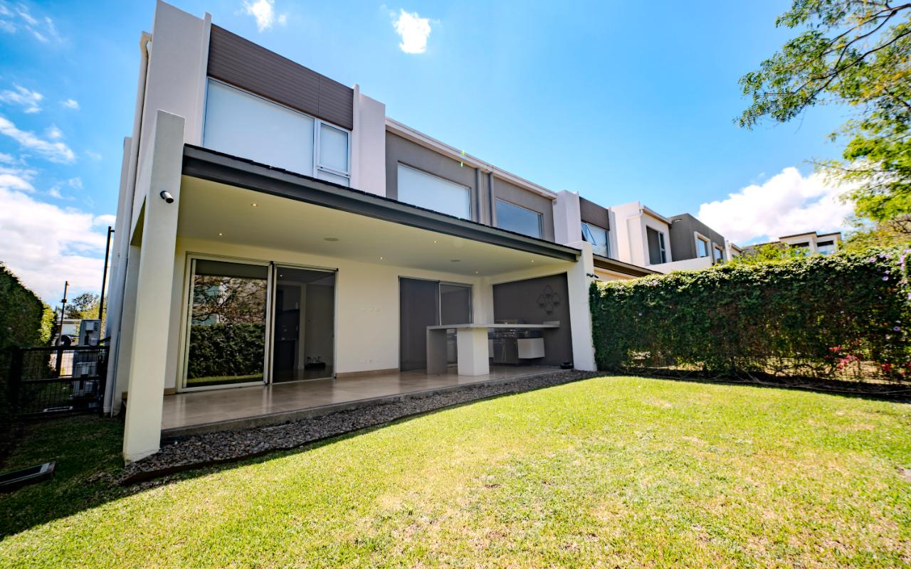 ID# 117482. Luxury Home for Sale in Guachipelín, Escazú | 3 Bedrooms + Service Room | 280 m² Construction | 398 m² Lot | $535,000 This contemporary home is located just 1.5 km north of Construplaza in San Rafael de Escazú, one of the most sought-after residential areas in Costa Rica. With 280 m² of construction on a 398 m² lot, it offers a strategic location close to Multiplaza Escazú, Avenida Escazú, CIMA Hospital, top schools, and Route 27, ensuring both convenience and strong long-term value. Built in 2018, the property features a functional two-level layout with integrated social areas, a modern kitchen with induction cooktop, and excellent natural lighting. It includes A/C in the main living area, a private water tank, terrace, 3 bedrooms plus service room, 2.5 bathrooms plus service bath, electric blackout blinds, and a Lutron smart lighting system. The home also offers 4 parking spaces and a storage room. The sale includes kitchen appliances, BBQ, window screens, built-in closets, A/C units, and blackout blinds, making it a move-in-ready option within a secure gated community in Guachipelín—ideal for buyers seeking comfort, technology, and location in Escazú.